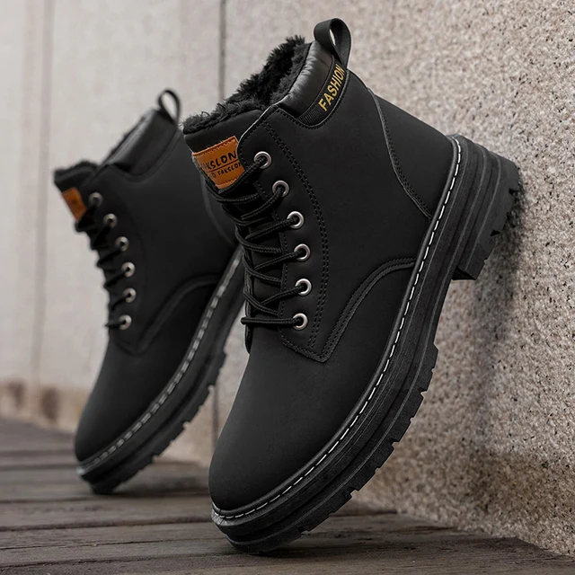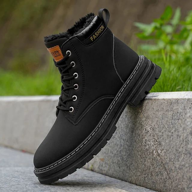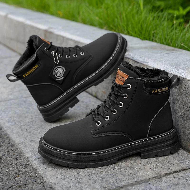 Men’s Snow Boots: Fleece-Lined Warmth, Black Classic Moto Boots, Outdoor Street Style, Versatile