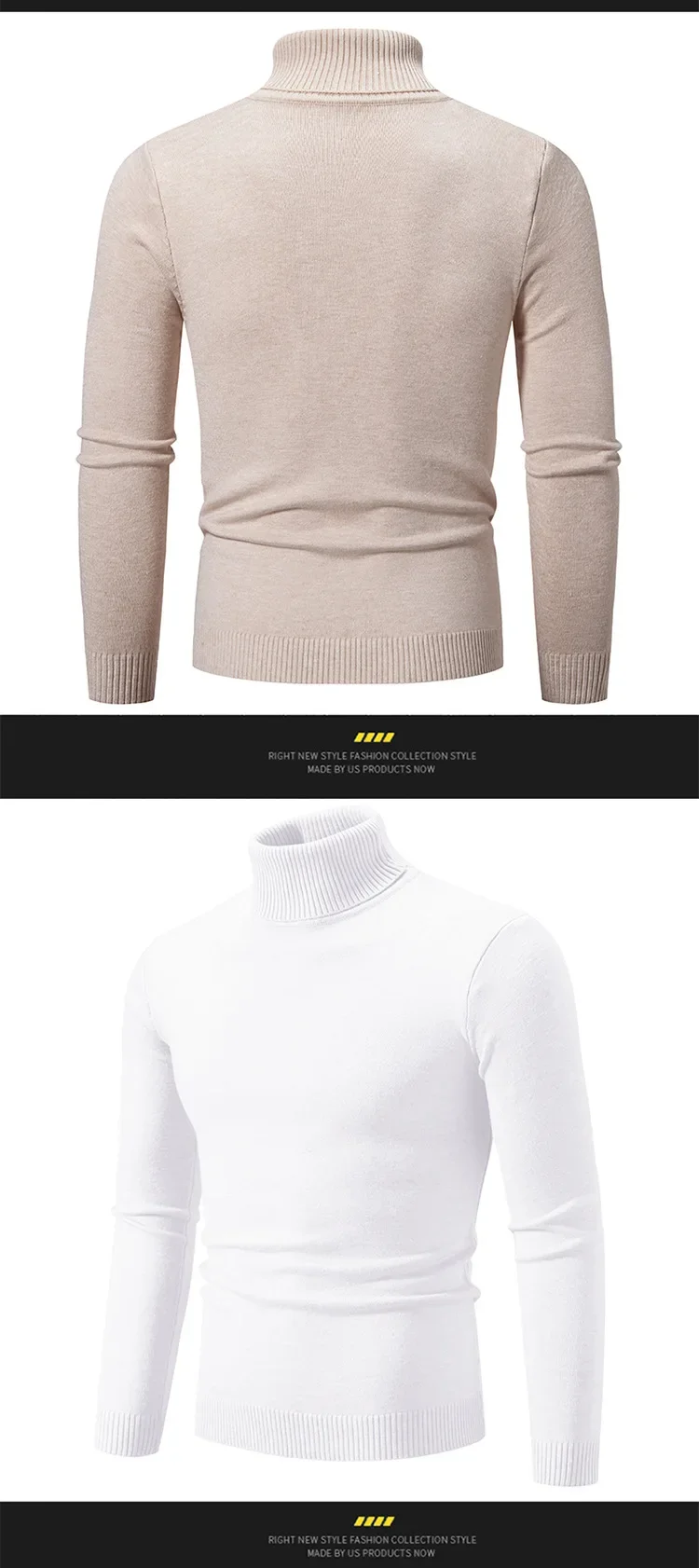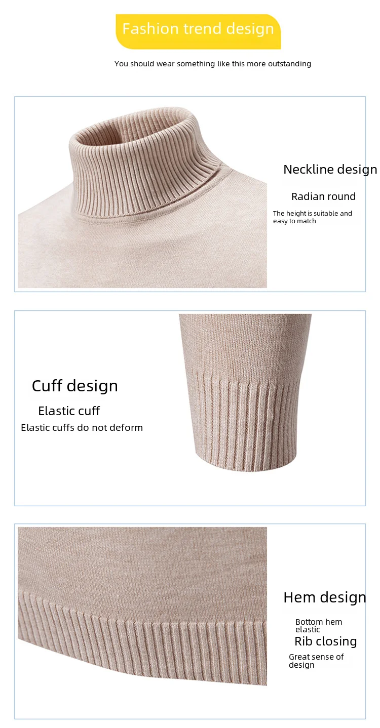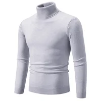 Men's Solid Color High Neck Slim Fit Casual Knitted Sweater Youth Base Layer Top Korean Style Thin Warm Pullover