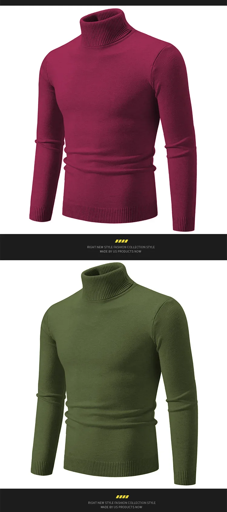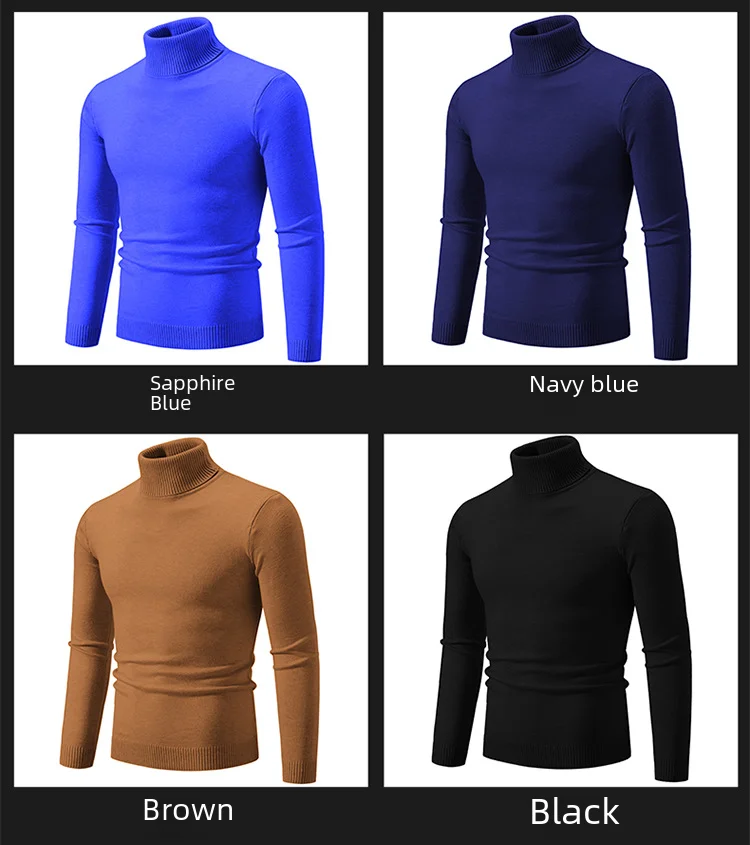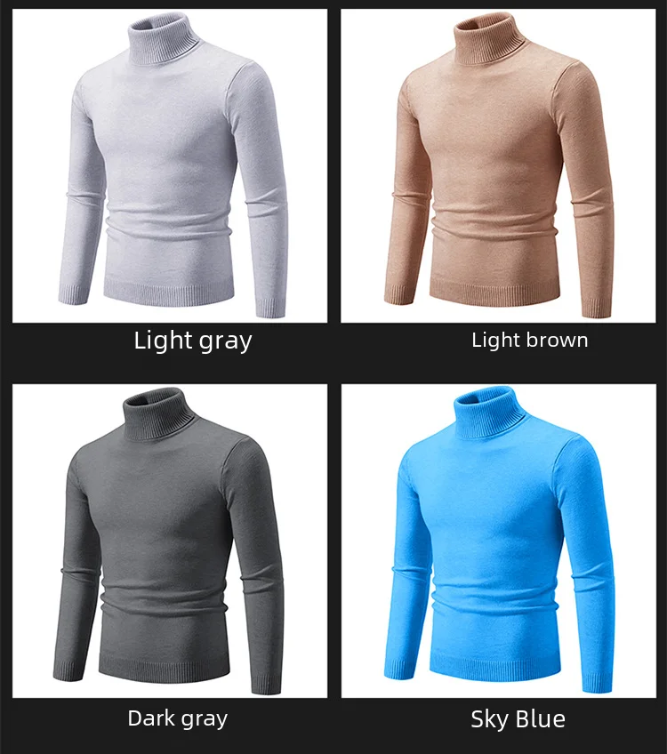 Men’s Solid Color High Neck Slim Fit Casual Knitted Sweater Youth Base Layer Top Korean Style Thin
