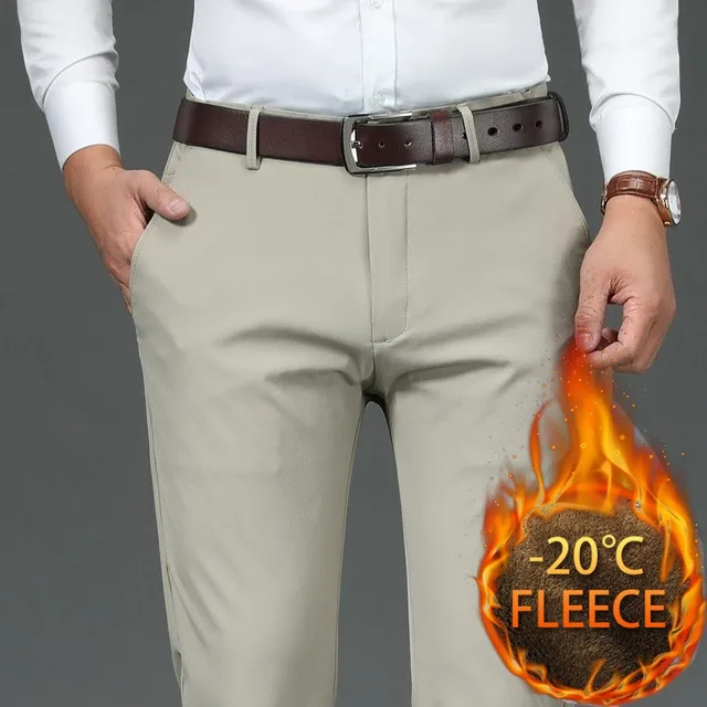 Men’s Straight Slacks with High Waist in Winter Plush Slacks Fashion Goes with Everything Plush