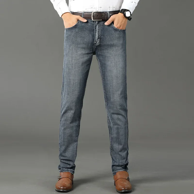Men’s Stretchy Business Jeans Thick Thin Grey Slim Fit Fashionable High-End Feeling New Arrival