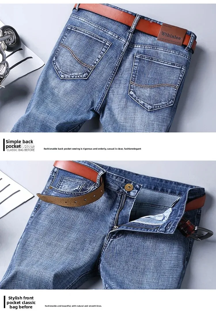 Men's Stretchy Business Jeans Thick Thin Grey Slim Fit Fashionable High-End Feeling New Arrival 2025 Comfortable Casual Trousers
