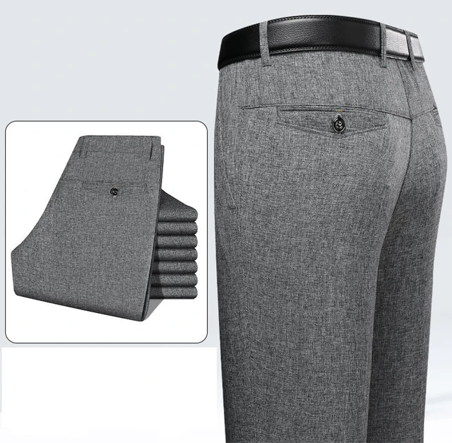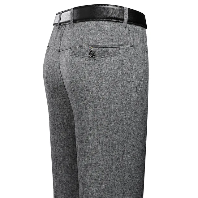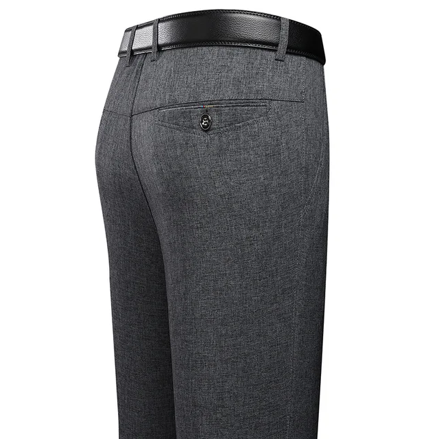 Business Casual Men's Straight Leg Thin Dress Pants Elastic Waist Mid-Year Dad Suit Trousers Lightweight Formal Trousers