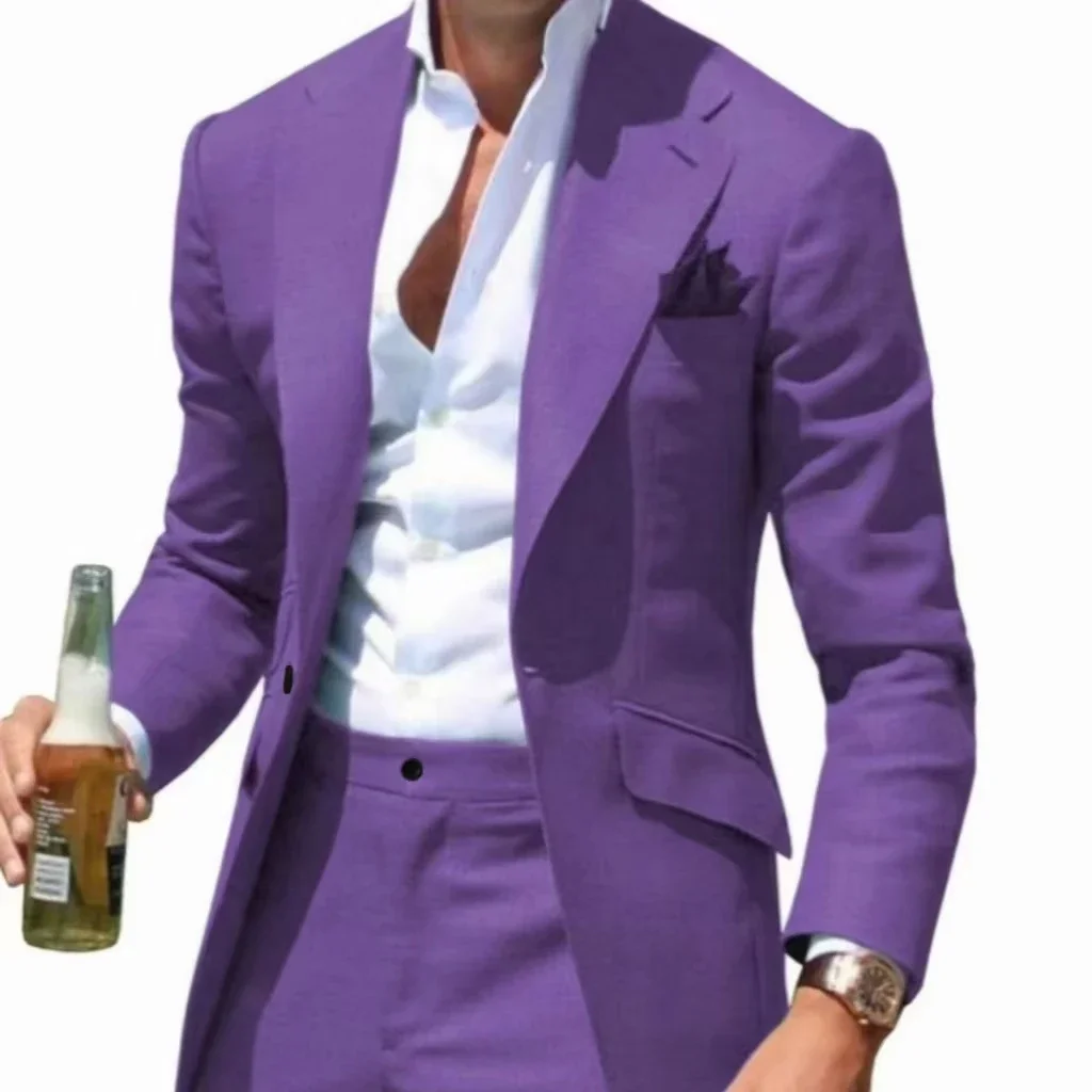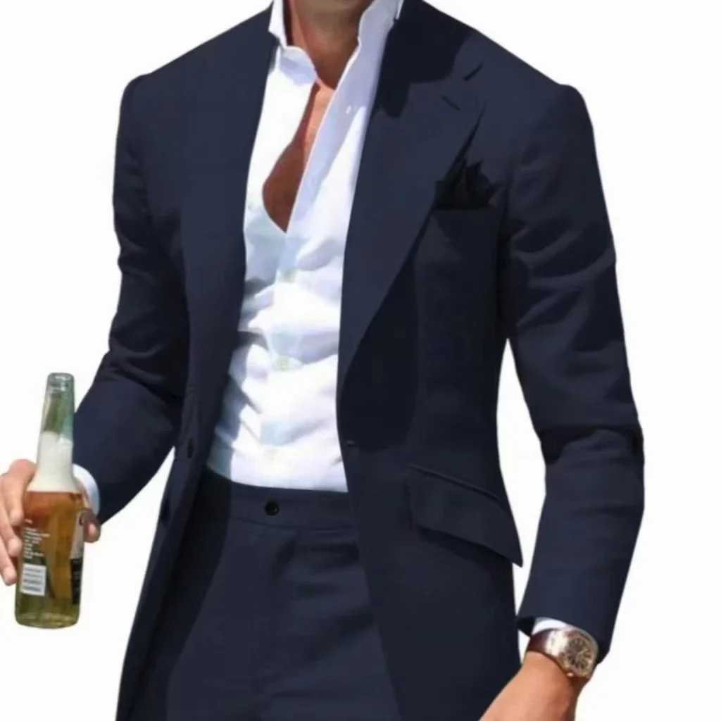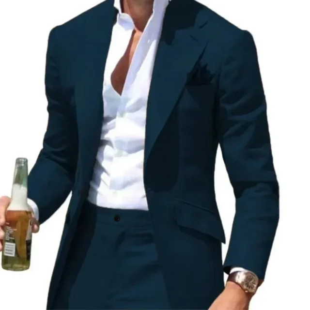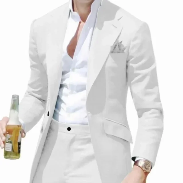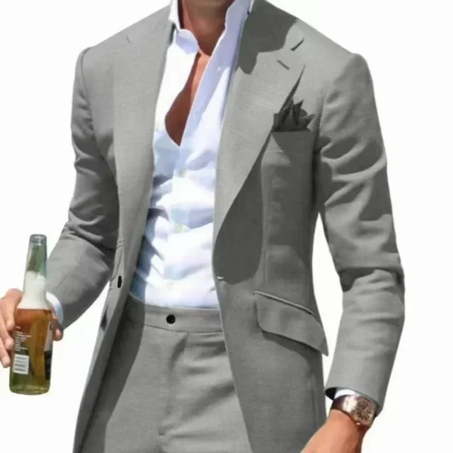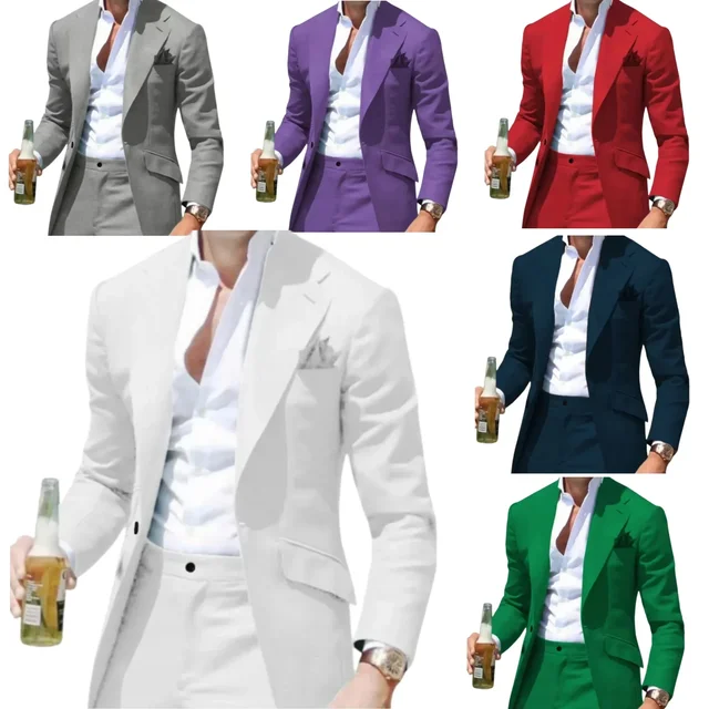 Men's Suits Casual Coat Summer Beach 2 Piece Blazer and Pant Set Notched Lapel Slim Fit Tuxedo Set Wedding Dress Business Party