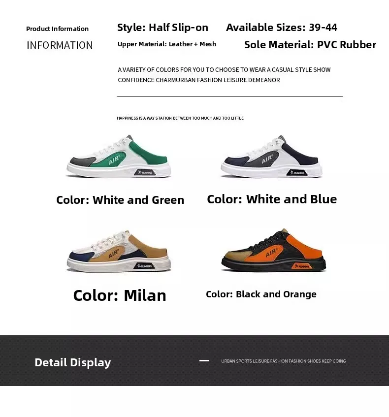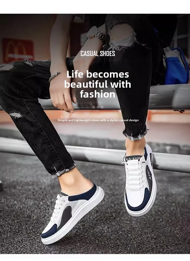Men's Summer Breathable Anti-Odor Lazy Slip-On oes No Ba Thi Bot Sports Head Hole Trendy oes f Slippers