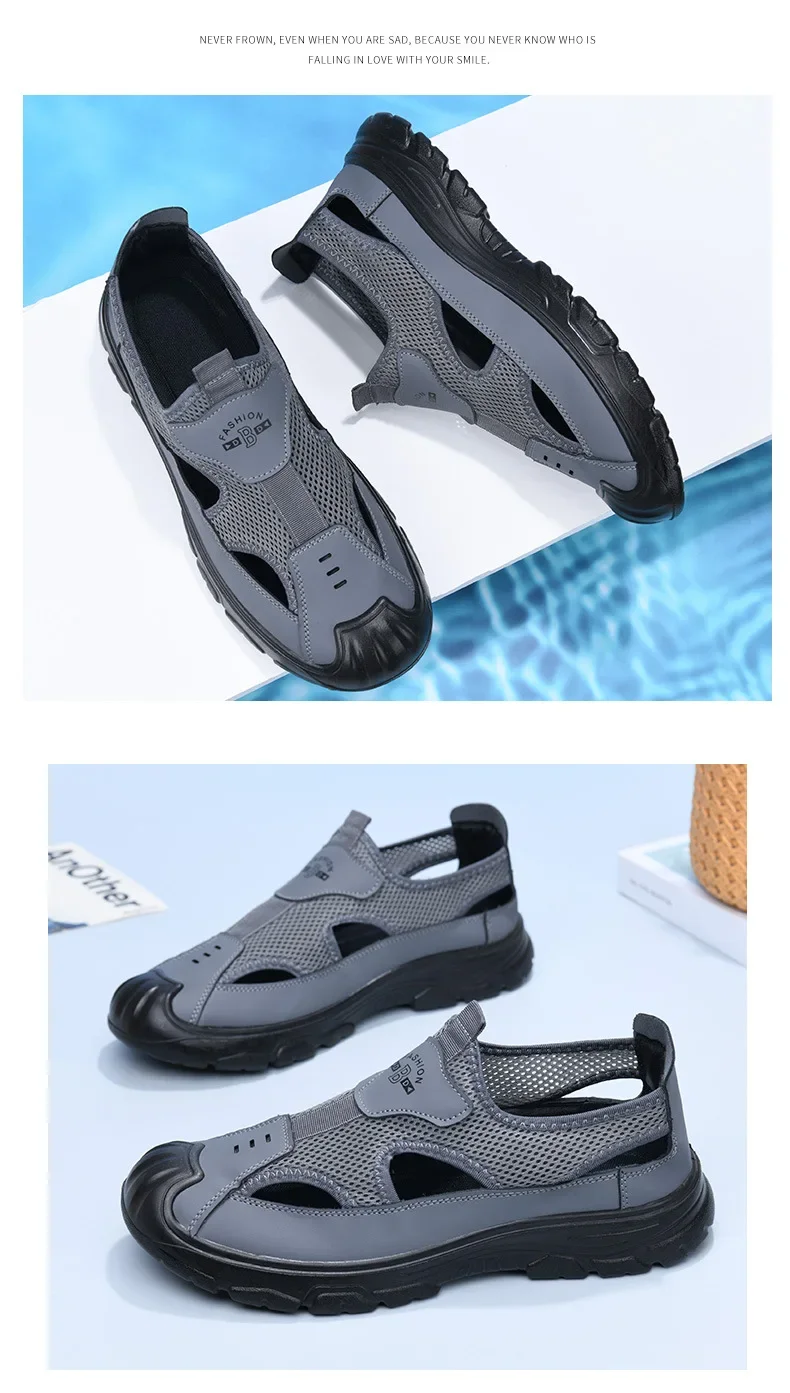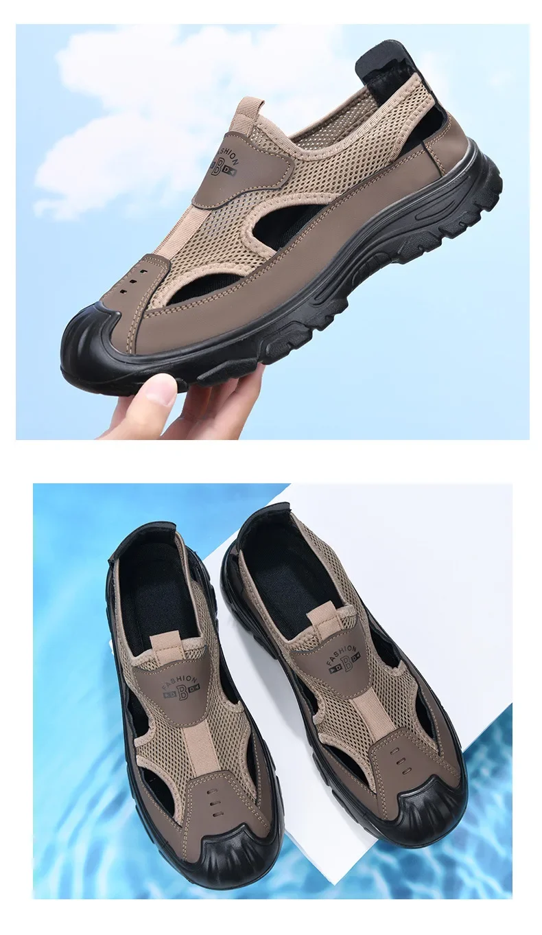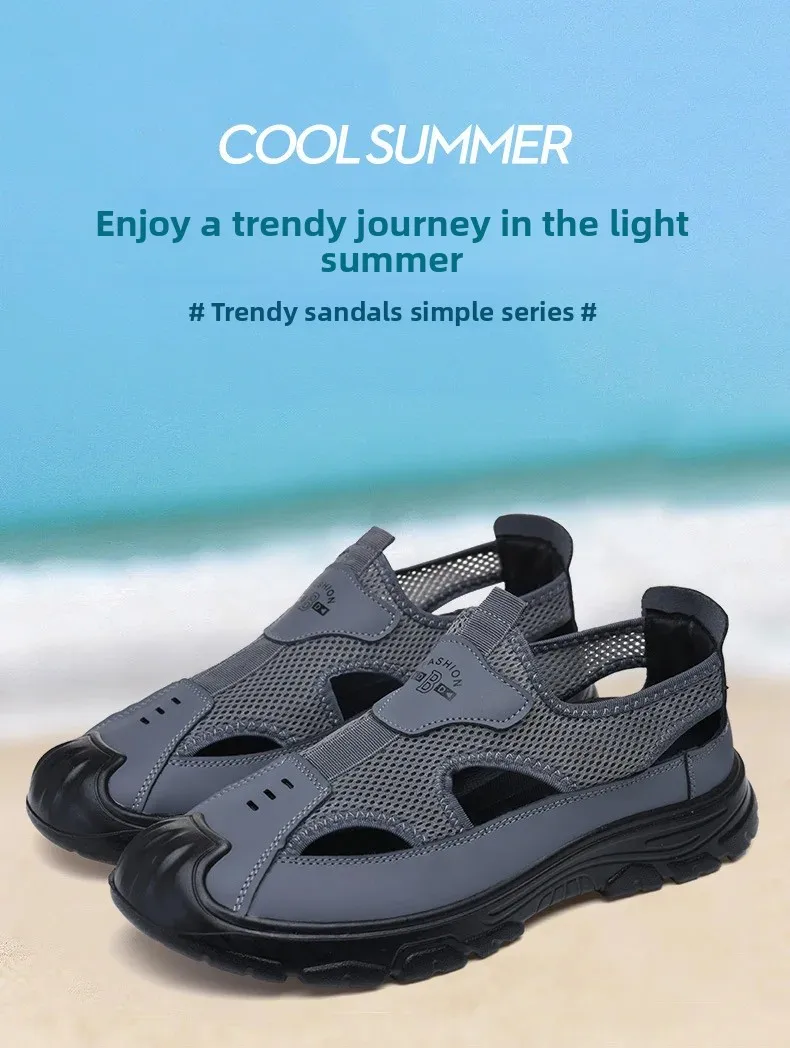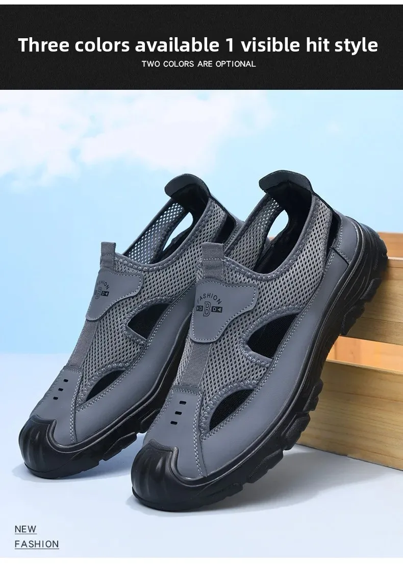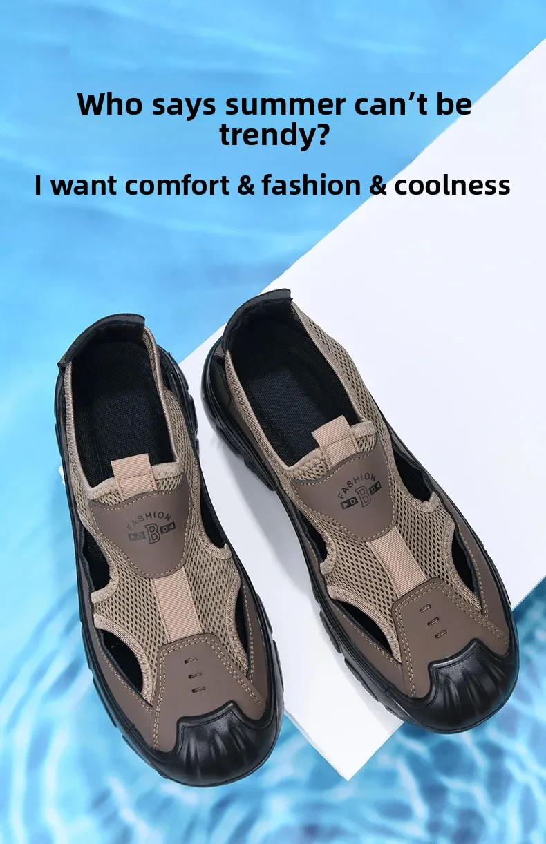 Men’s Summer Breathable Mesh Sandals Water Shoes Outdoor Casual Beach Shoes Slip-On Comfortable