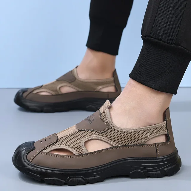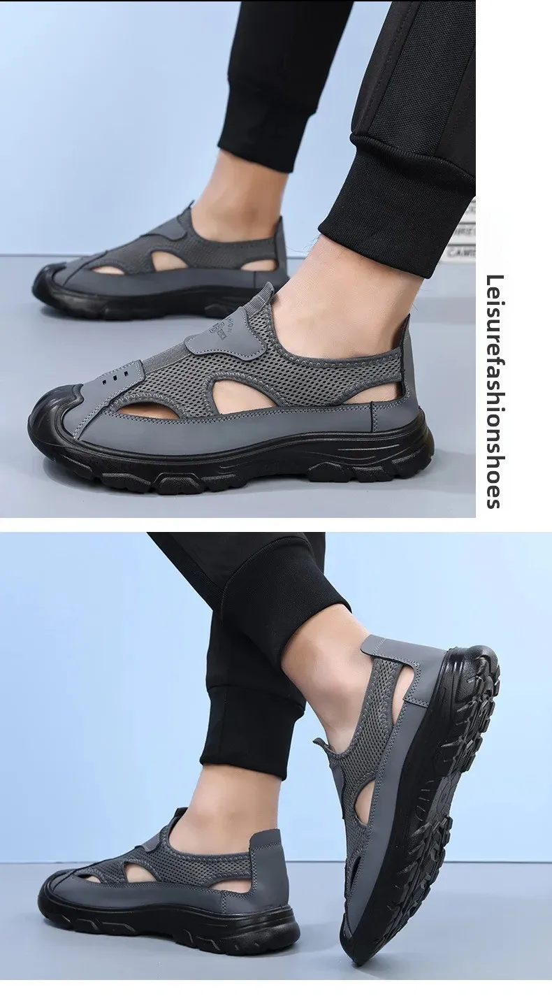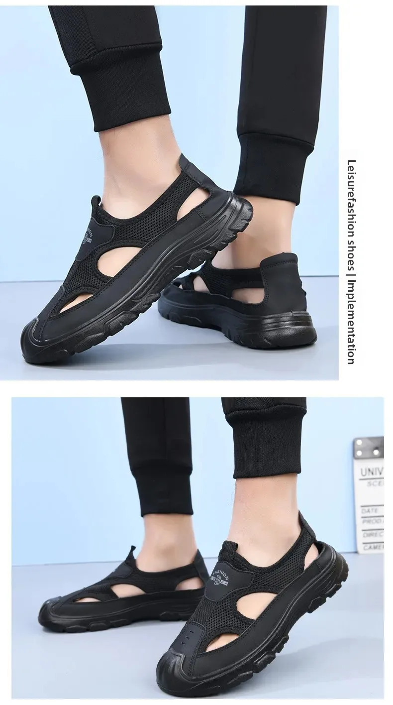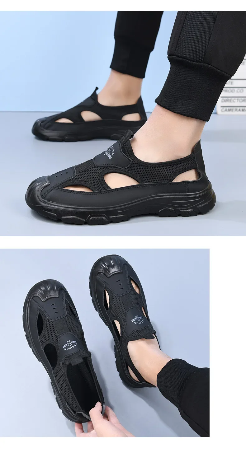 Men’s Summer Breathable Mesh Sandals Water Shoes Outdoor Casual Beach Shoes Slip-On Comfortable