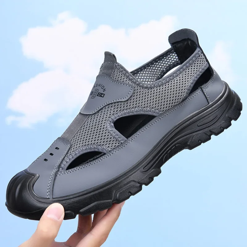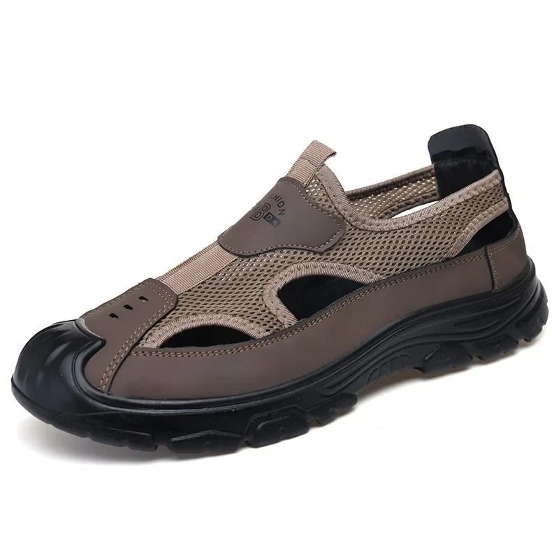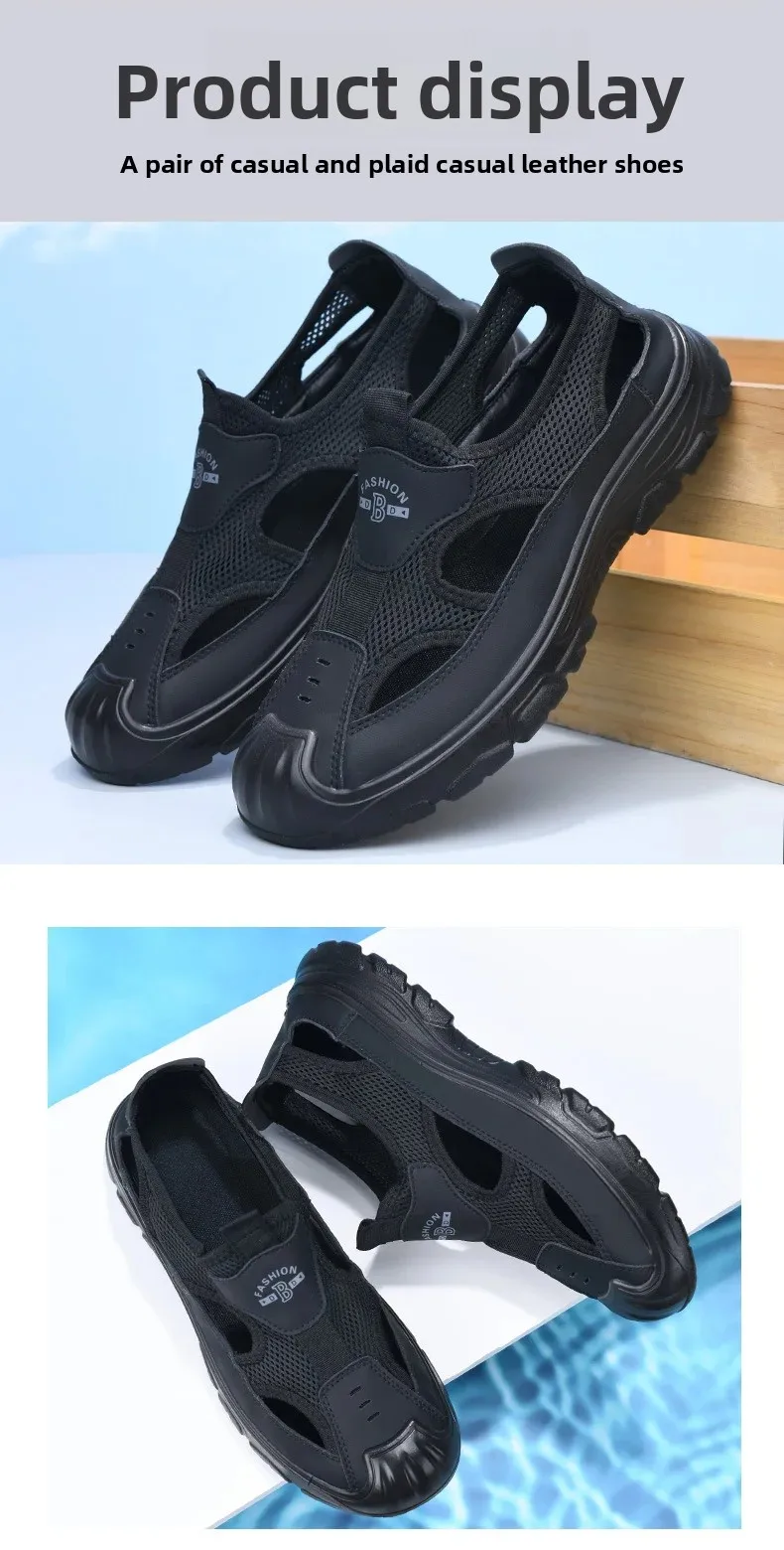 Men's Summer Breathable Mesh Sandals Water Shoes Outdoor Casual Beach Shoes Slip-On Comfortable PU Bottom Grid Lined Shoes