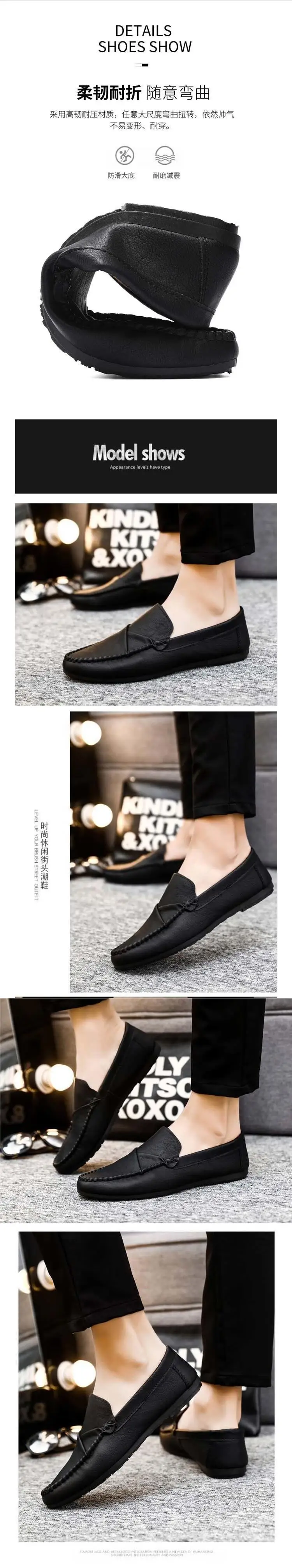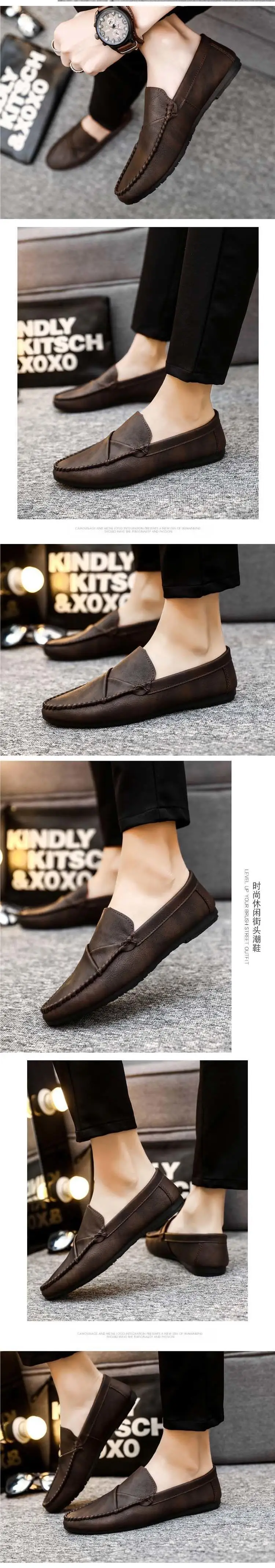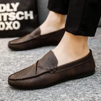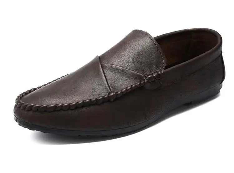 Men’s Summer Casual Slip-On Leather Shoes Driving Lightweight Work Shoes Breathable Comfortable