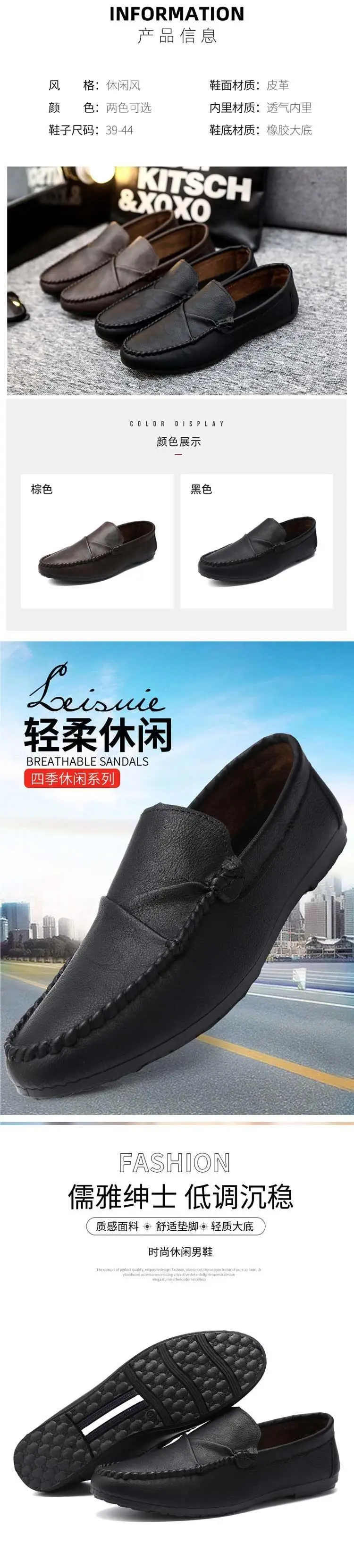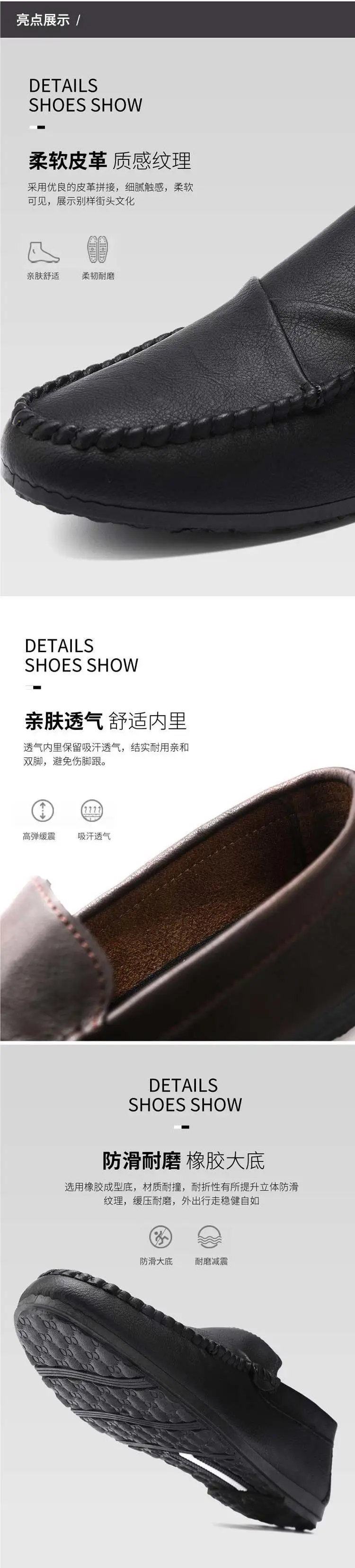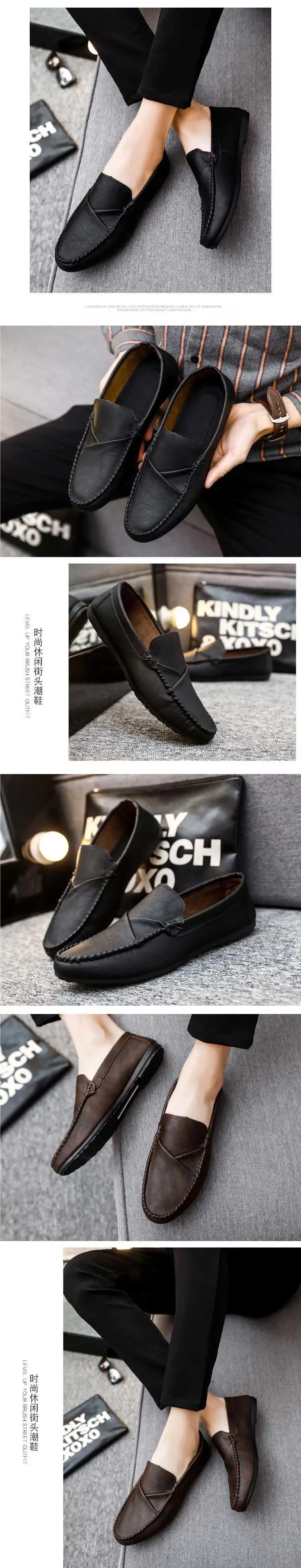 Men’s Summer Casual Slip-On Leather Shoes Driving Lightweight Work Shoes Breathable Comfortable