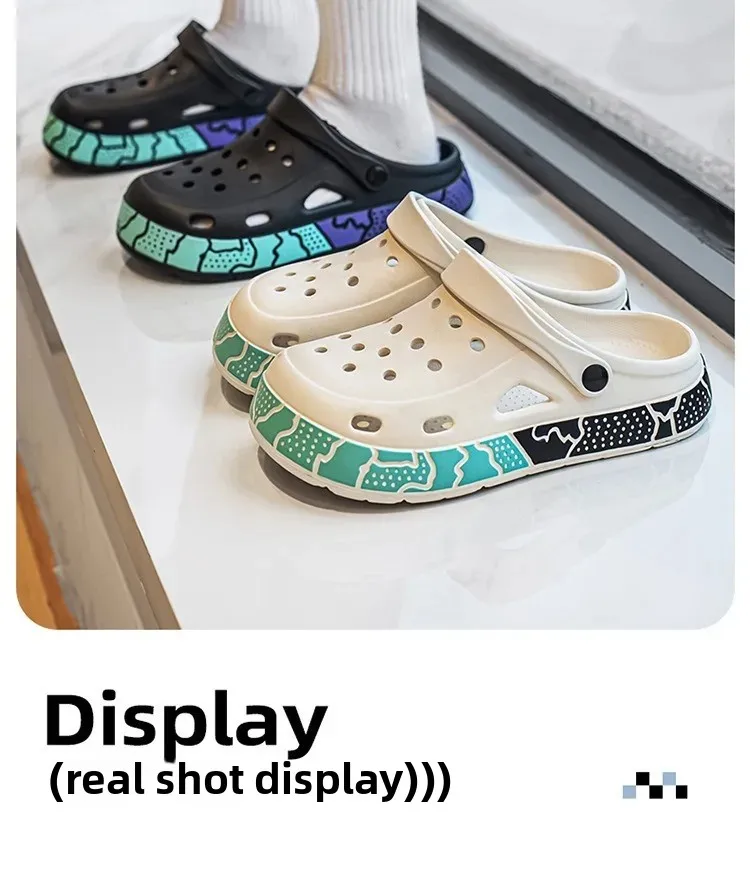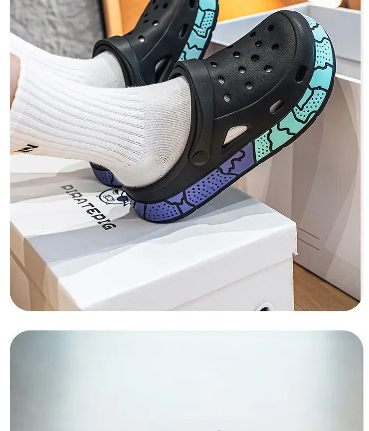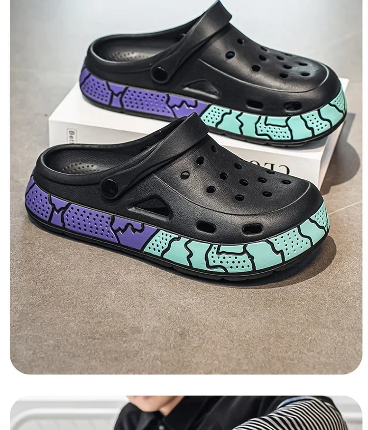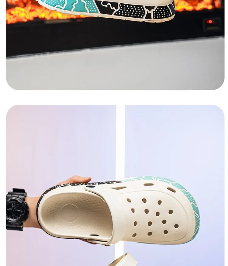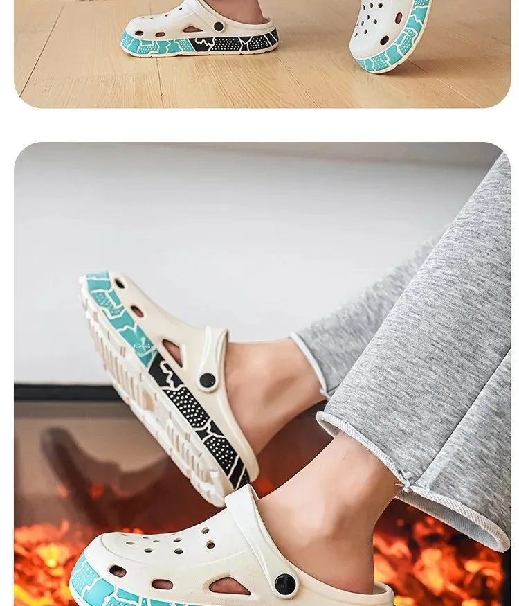Men's Summer Trendy Slippers Driving Office Dual-wear Sandals Soft Bottom Anti-slip Deodorant Large Size 45 Hole Shoes