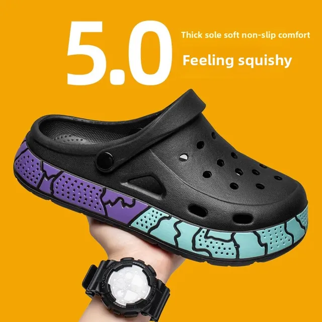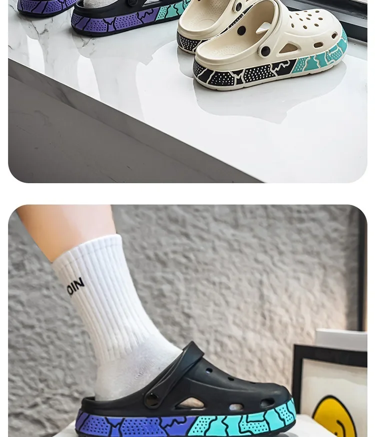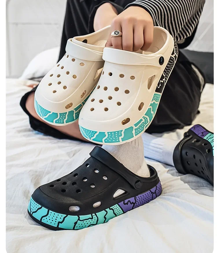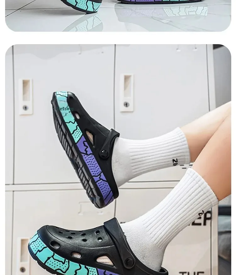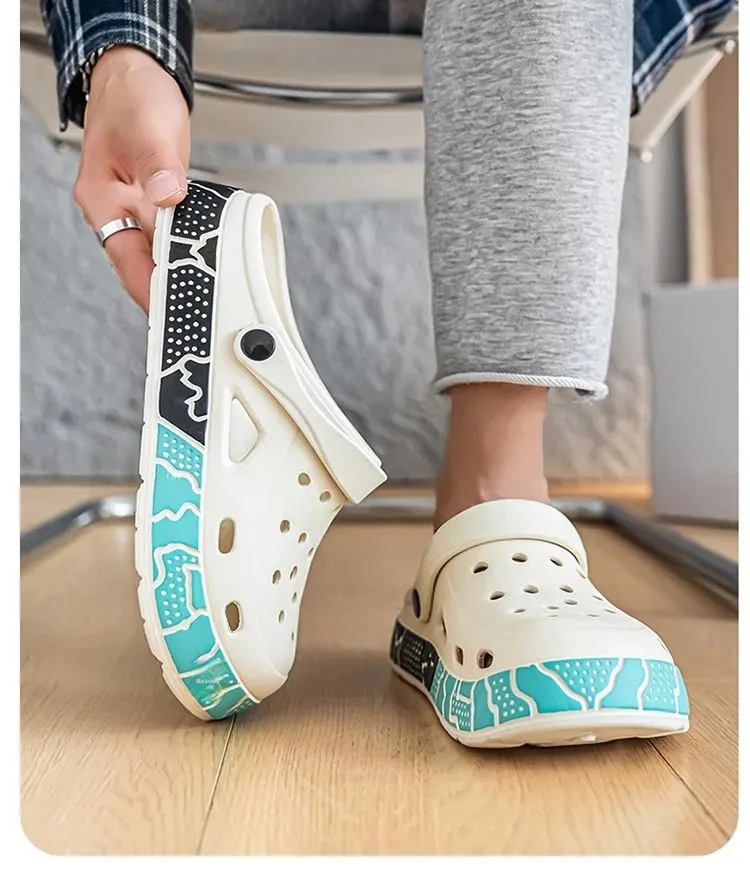 Men's Summer Trendy Slippers Driving Office Dual-wear Sandals Soft Bottom Anti-slip Deodorant Large Size 45 Hole Shoes