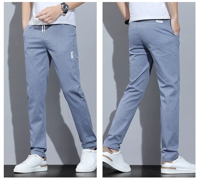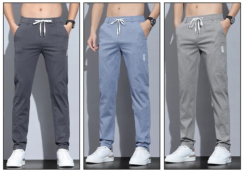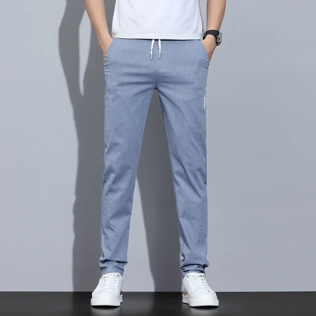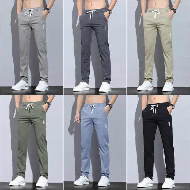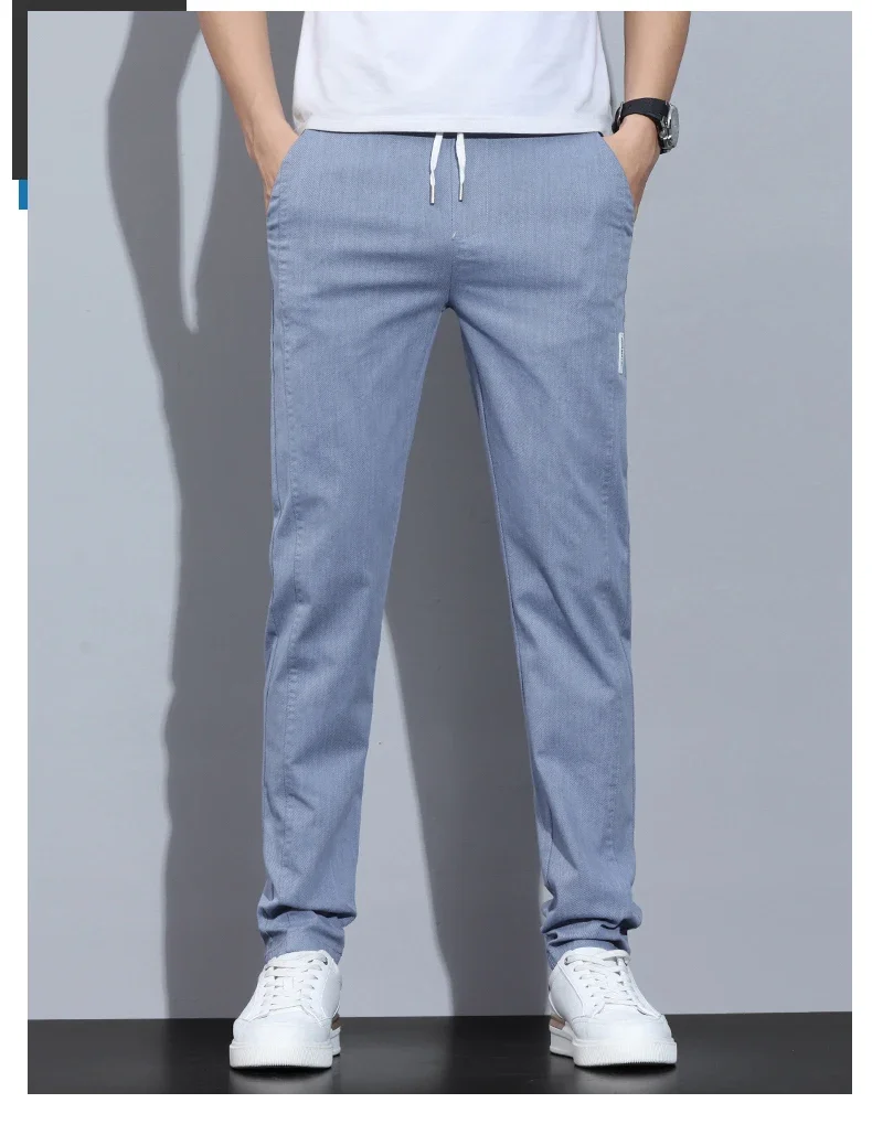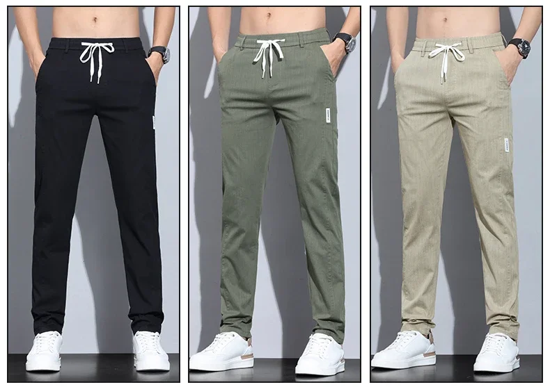Men’s Sweatpants Elastic Waist Spring Summer Fashion Casual Pants Men Thin Cotton Stretch Slim