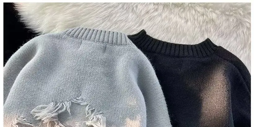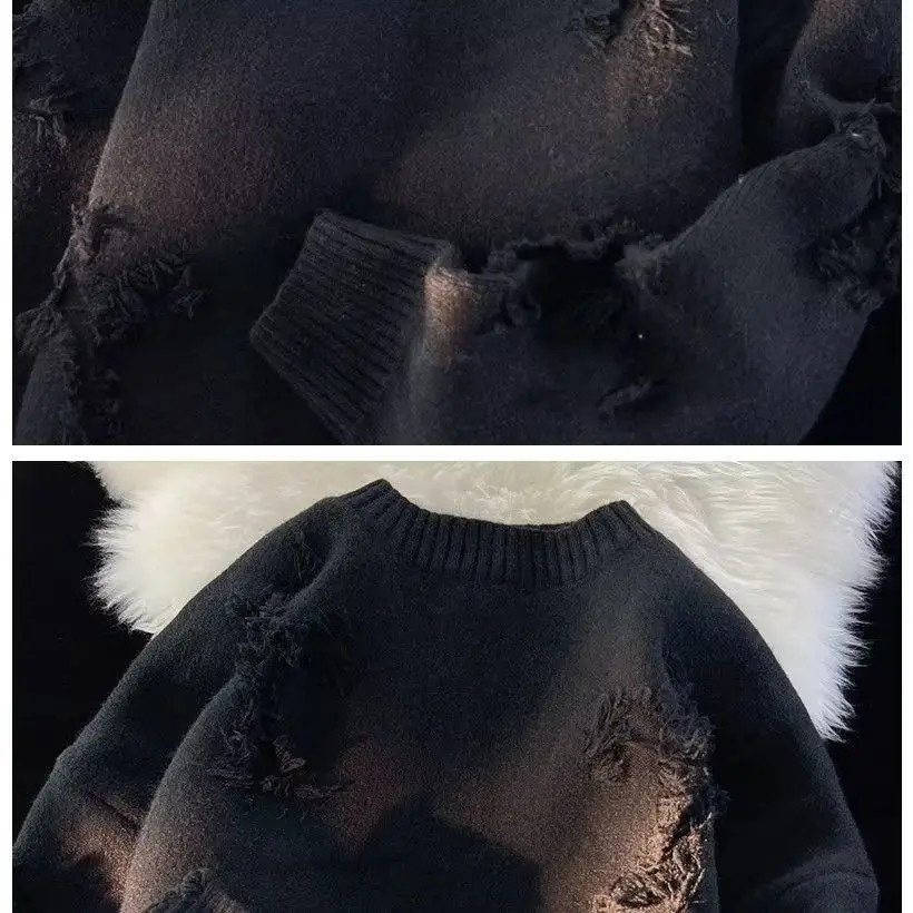 Men’s Thiened Autumn Winter Knitted Sweater Loose Fit Hong Kong Sle Casual Outerwear Polyester