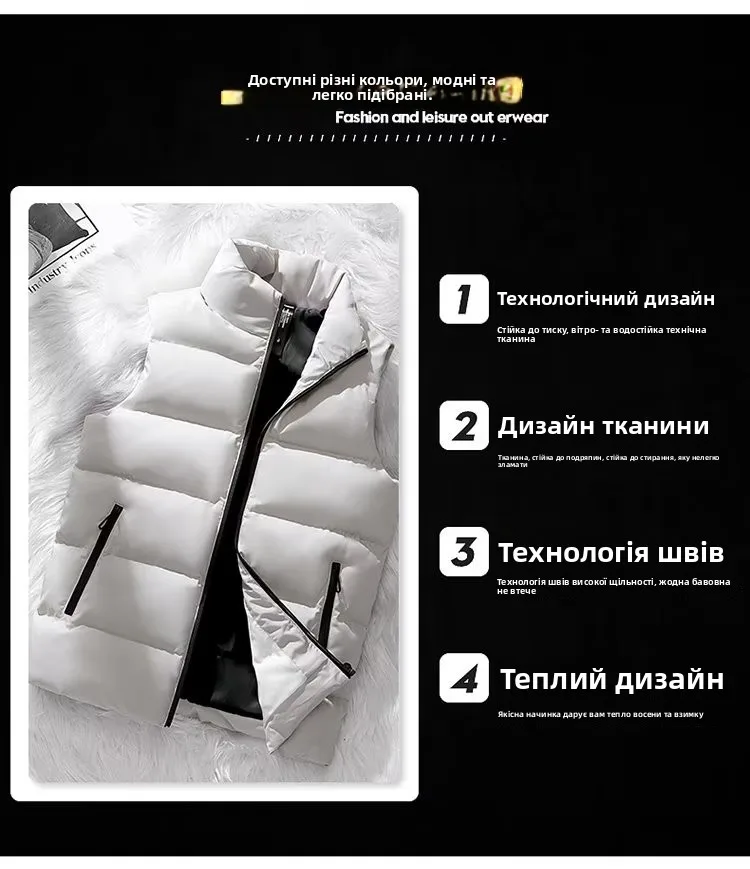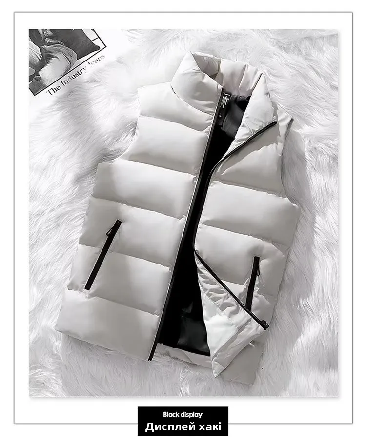 This men’s vest is filled with thickened down cotton, providing excellent warmth for the chilly autumn and winter seasons.
