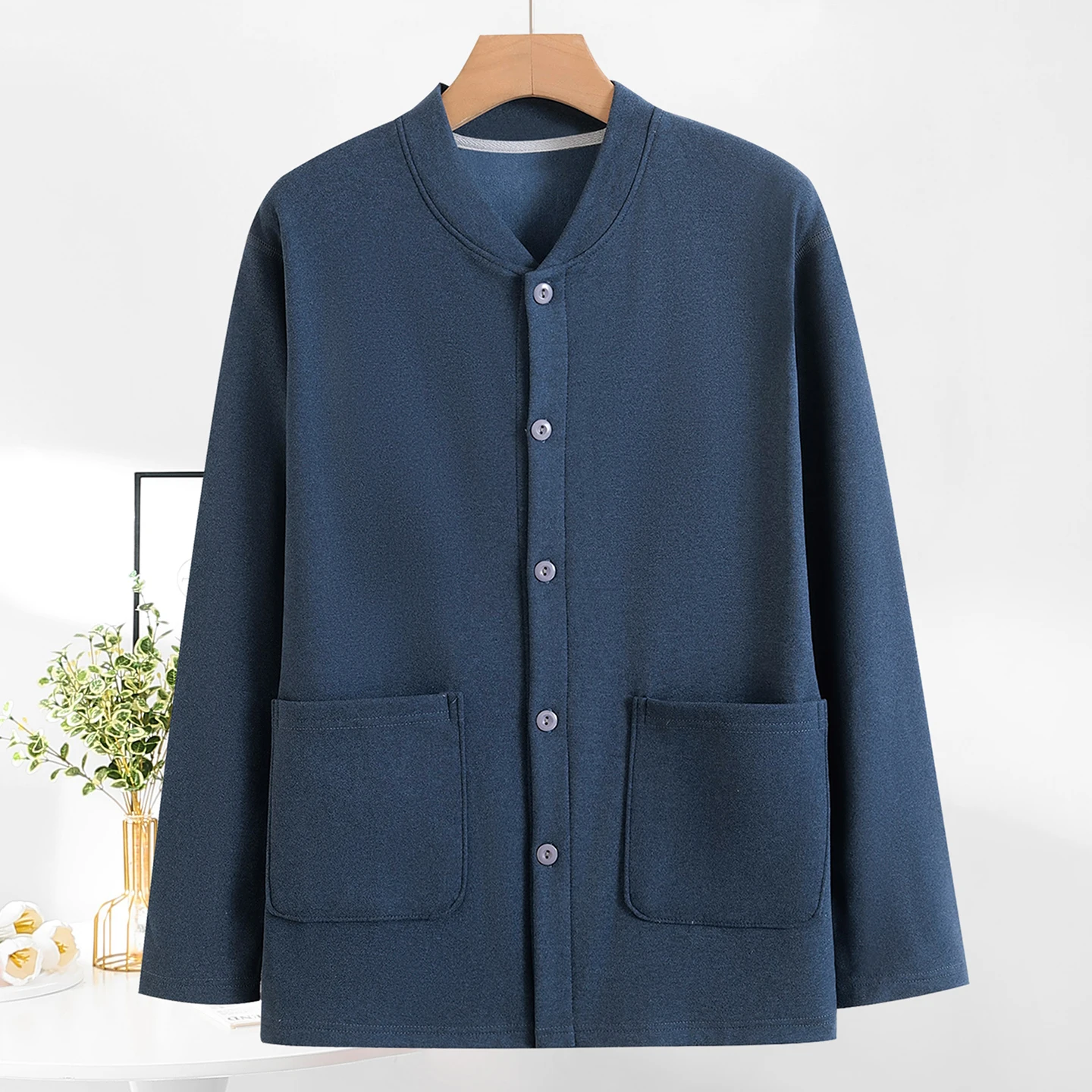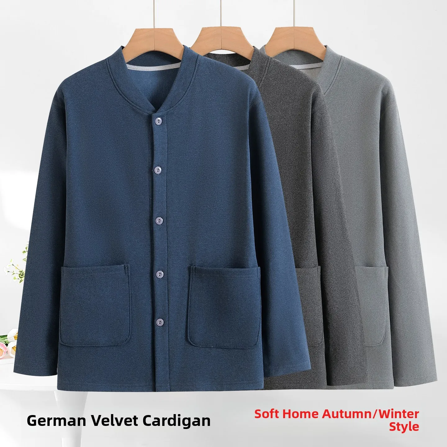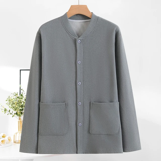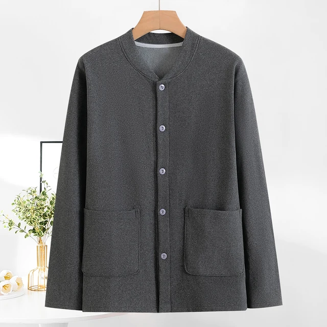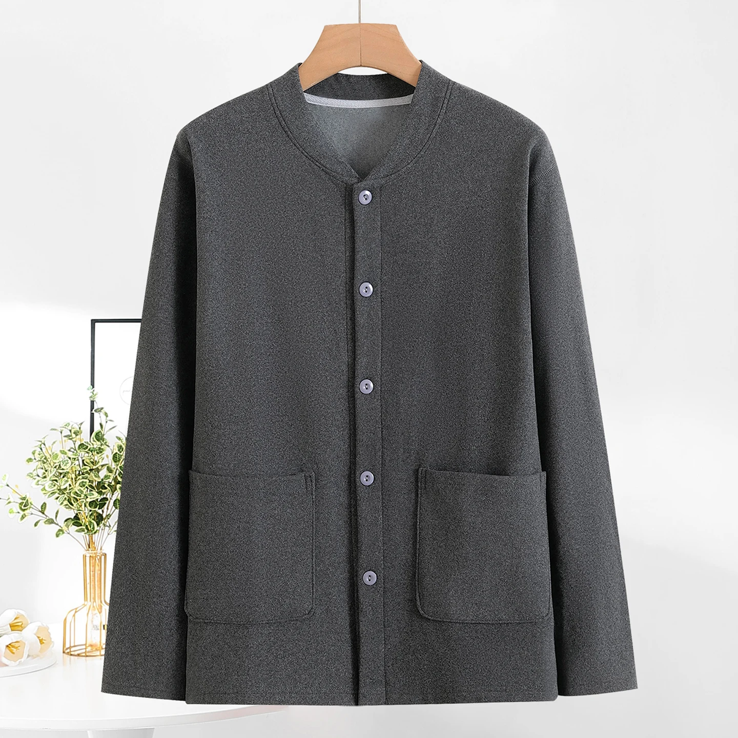 Men’s Thiened Fce Open Cardigan Autumn Clothes Loose Fit Base Layer Warm Underwear Casual Sle Elastic
