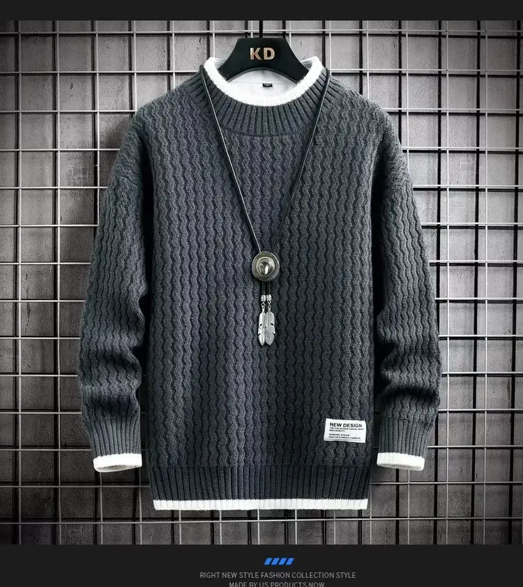 Men’s Thiened round Ne Knitwear Loose Wool Sweater Autumn Winter Warm Base Layer irt Japanese Sle