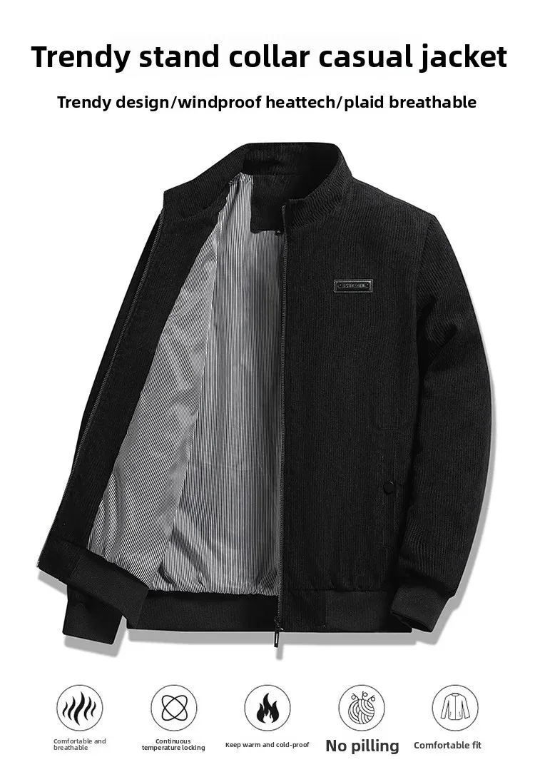 Be the first to review “Men’s Thin Corduroy Jacket Stand Collar Workwear Casual Top Spring Autumn New Style Lightweight”