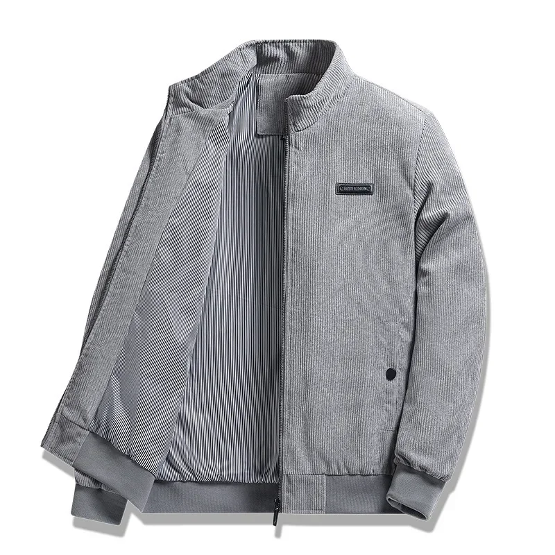 Men's Thin Corduroy Jacket Stand Collar Workwear Casual Top Spring Autumn New Style Lightweight Cotton Outerwear