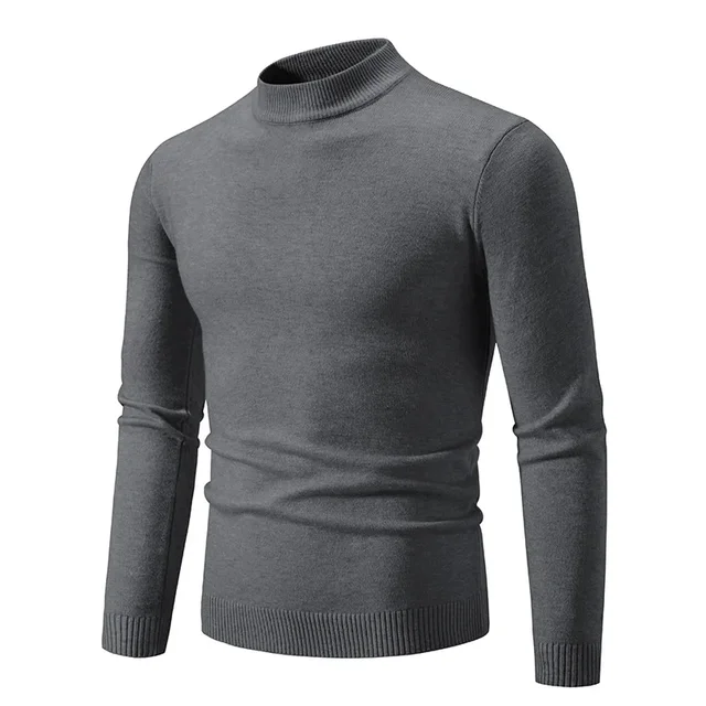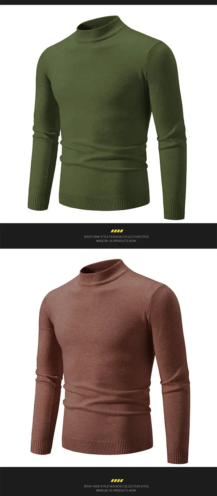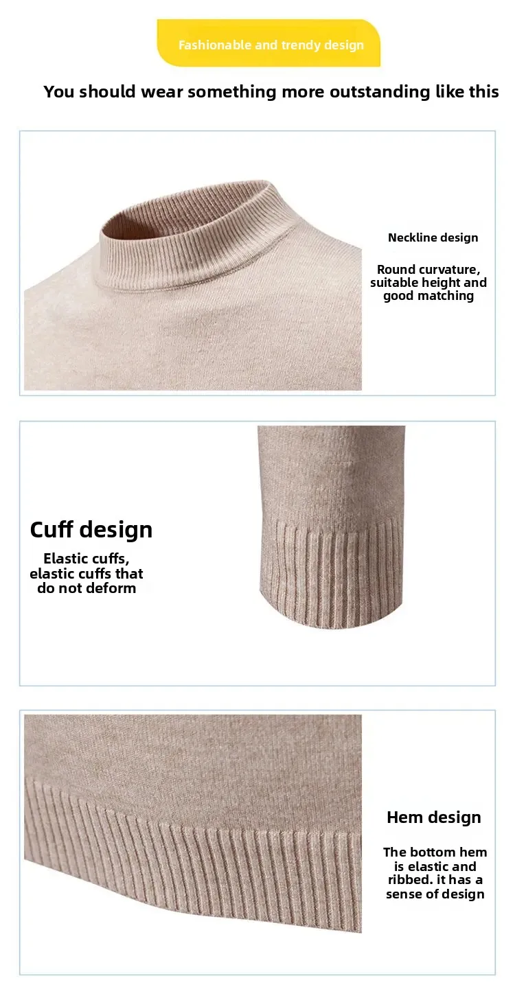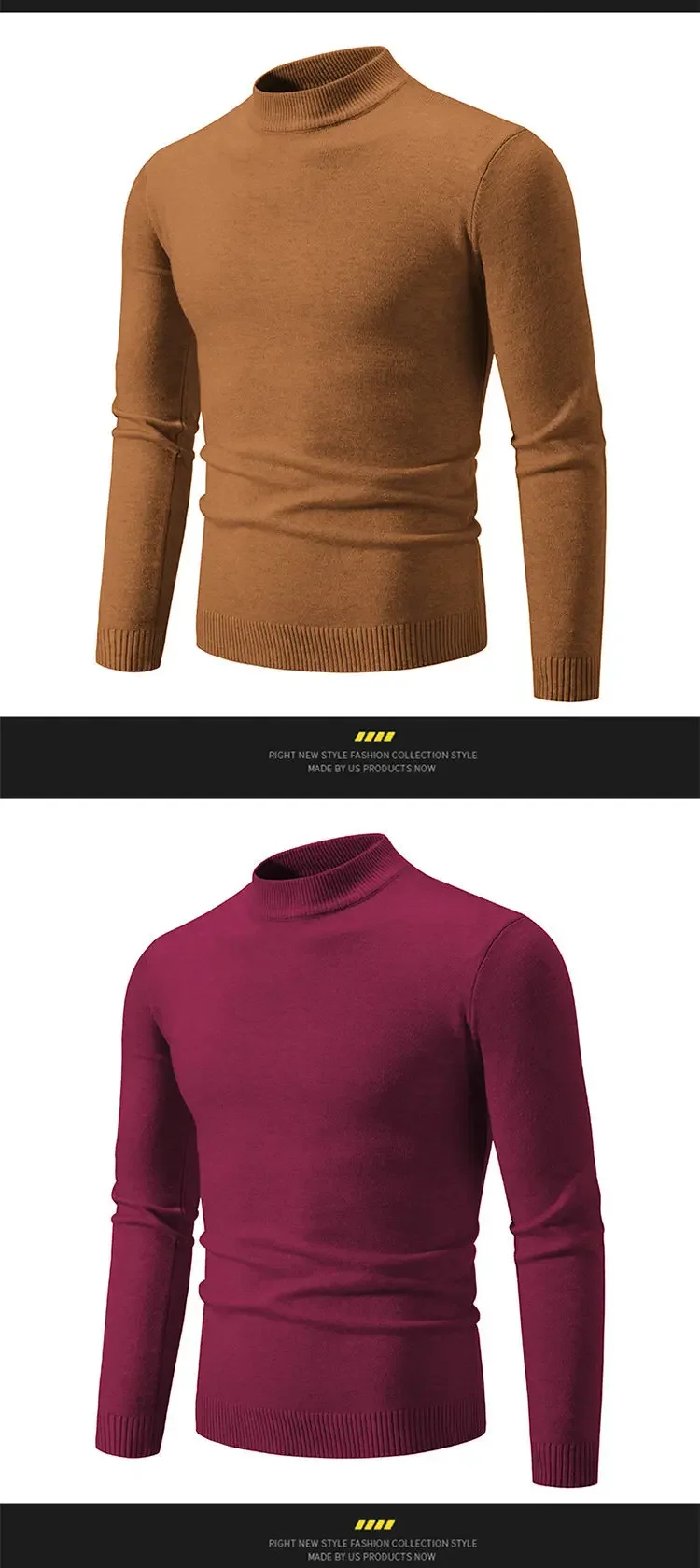 Men’s Thin Half High Neck Knitted Sweater Warm Pure Color Fine Knitwear Top for Autumn Season Comfortable