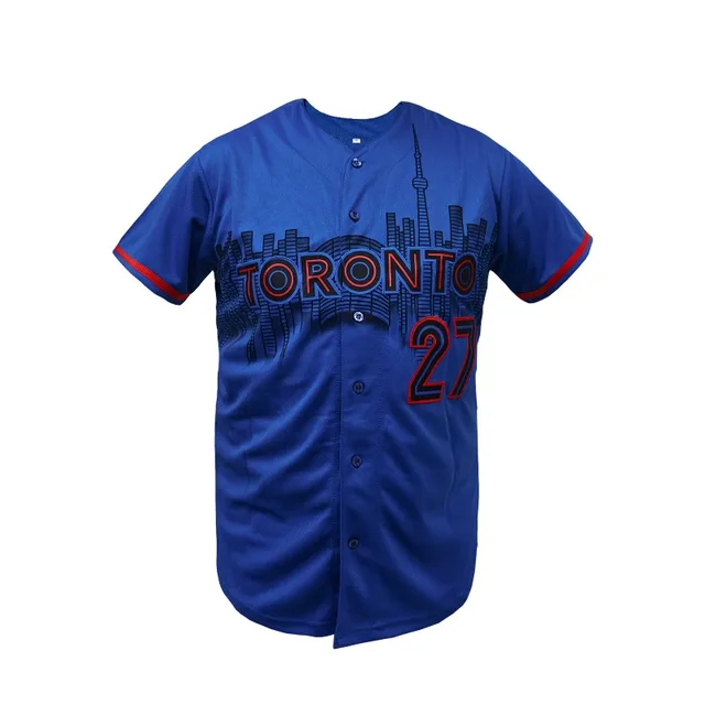 Men’s Toronto #27 Embroidered Baseball Jersey Loose Fit V-Neck Short Sleeve Sports Top for Casual