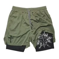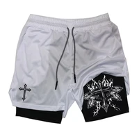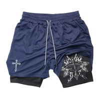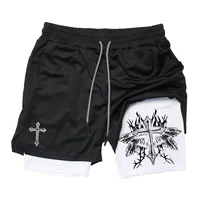 Men's Trendy Printed 2-in-1 Training & Running Shorts Quick-Dry Breathable Performance Gym for Summer Sport Athletic Activewear