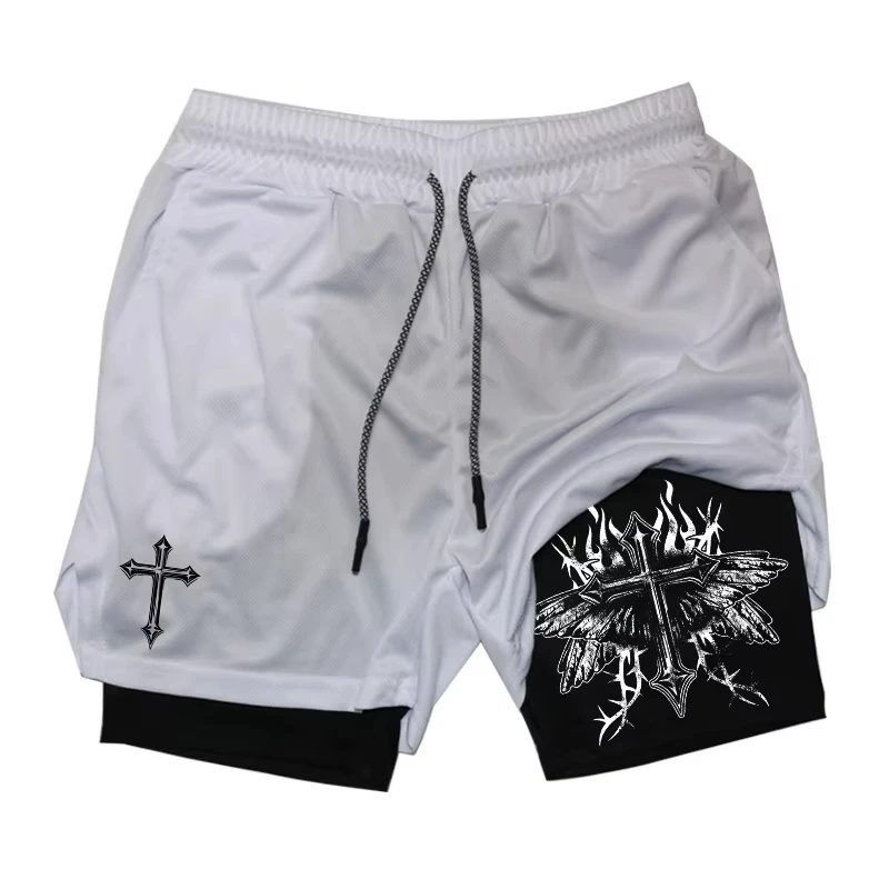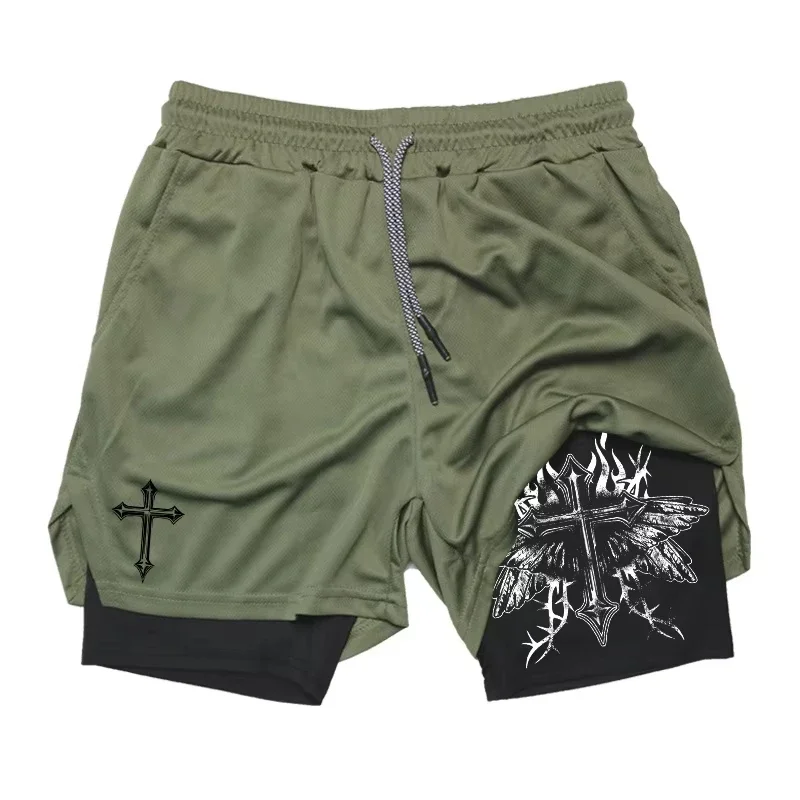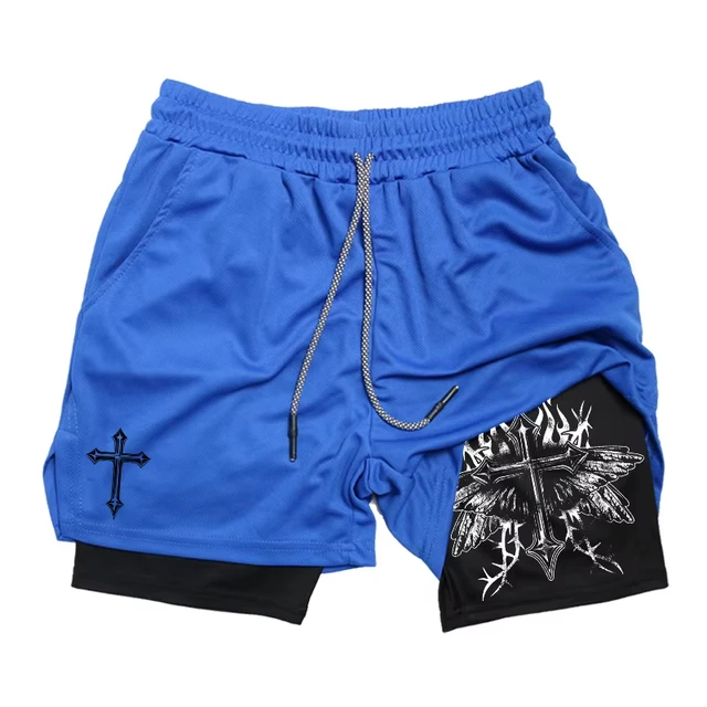 Men’s Trendy Printed 2-in-1 Training & Running Shorts Quick-Dry Breathable Performance Gym