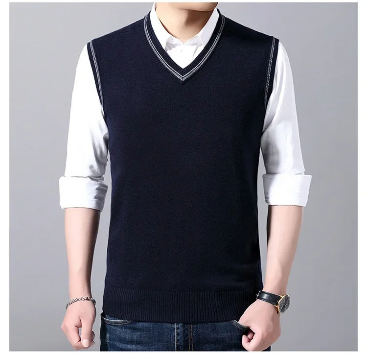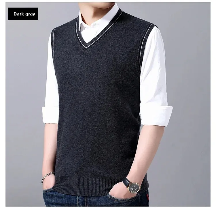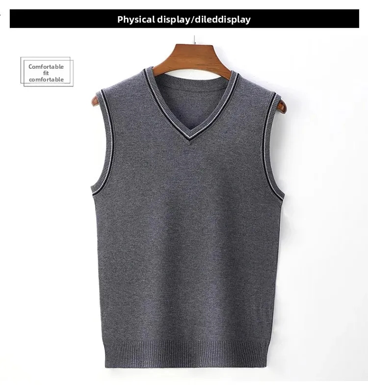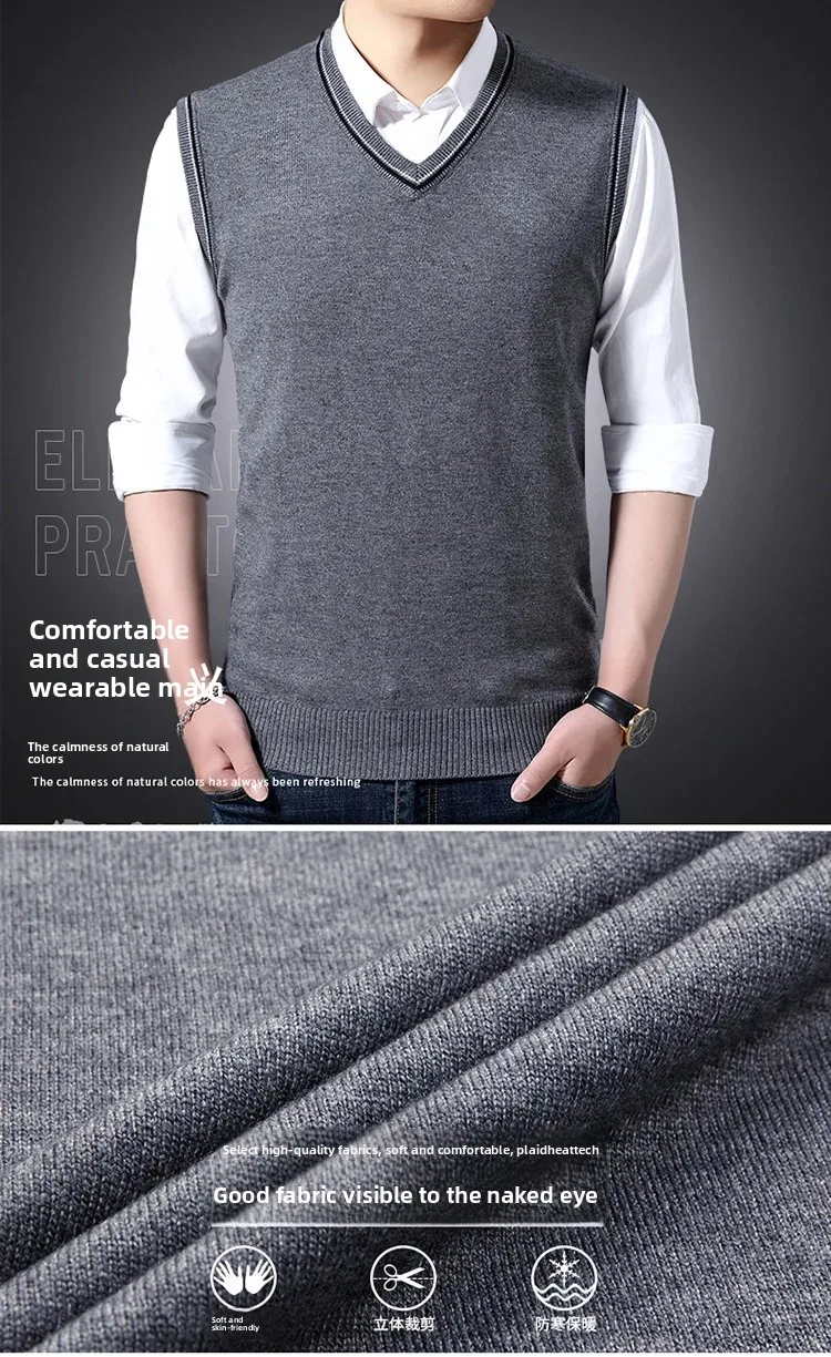 • V-Neck Design : The V-neck design adds a touch of elegance to this sleeveless pullover, perfect for middle-aged and elderly men.