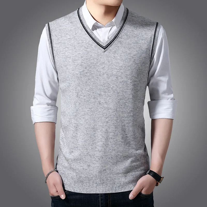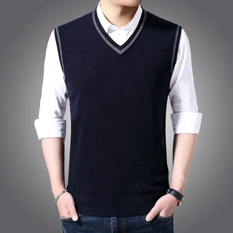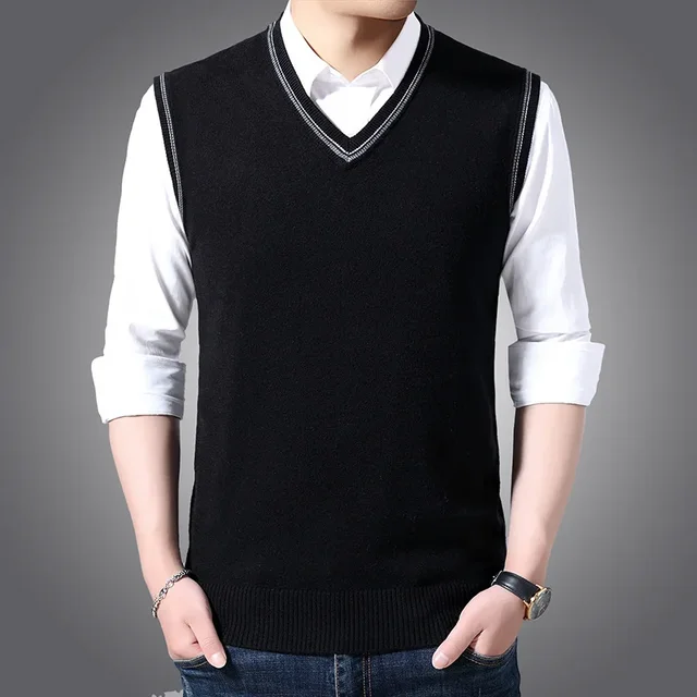• V-Neck Design : The V-neck design adds a touch of elegance to this sleeveless pullover, perfect for middle-aged and elderly men.