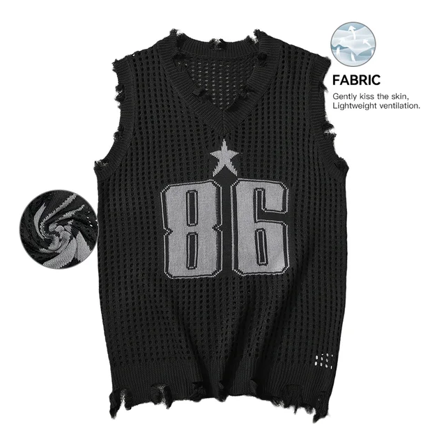 Men's Vest Summer Fashion Knitted Letter Pattern Mesh Sleeveless Vest Casual Breathable Knit Soft Vest Top Men US Size