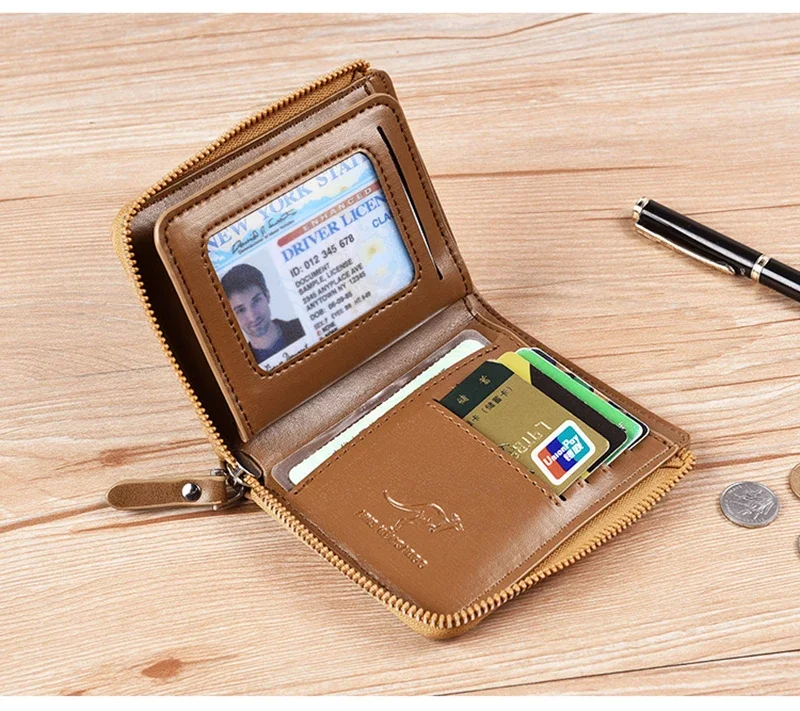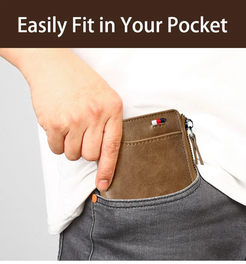 Price range: 7.80$ through 7.86$Mens Wallet Leather Business Card Holder Zipper Purse Luxury Wallets for Men RFID Protection Purses Carteira