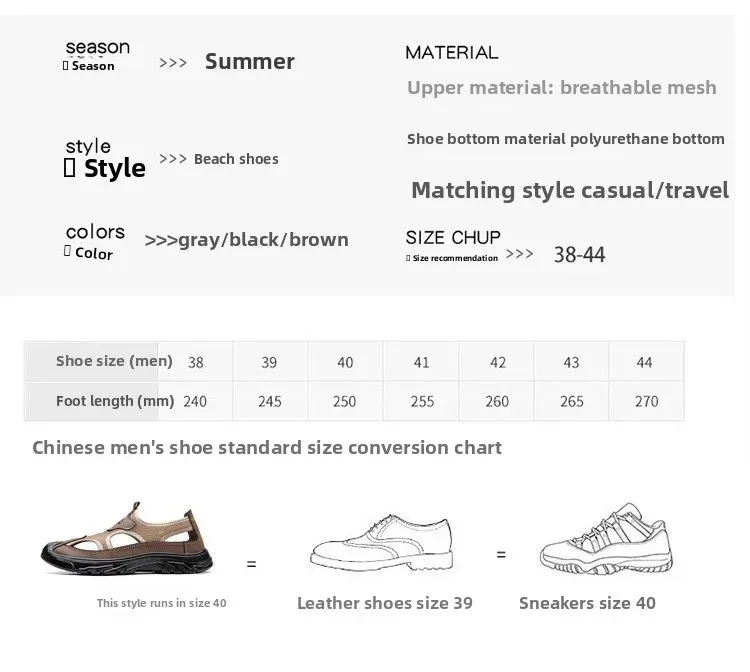 Men’s Water Shoes Summer Breathable Mesh up up down down Sandals Hollow out Casual Beach Shoes