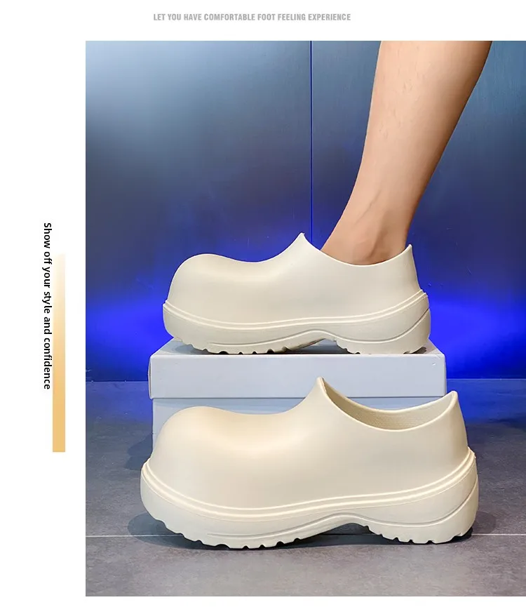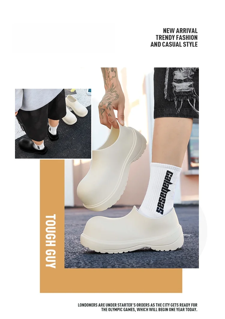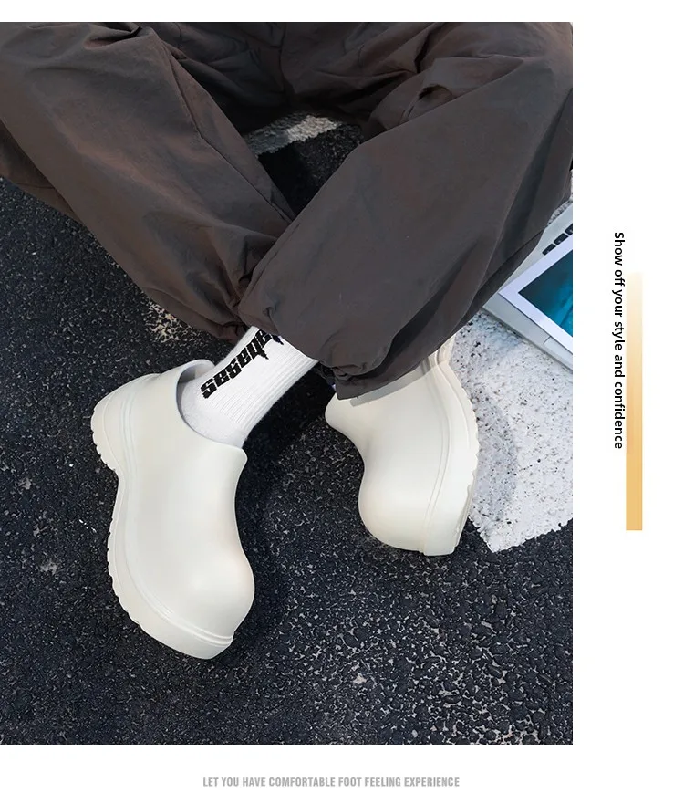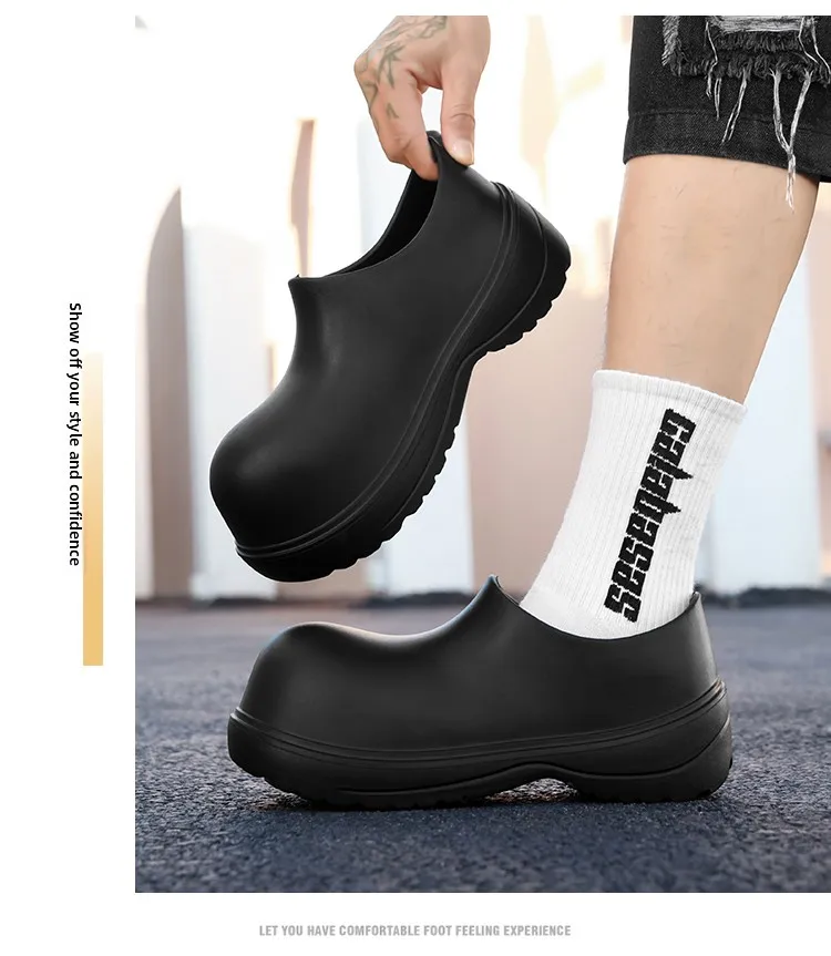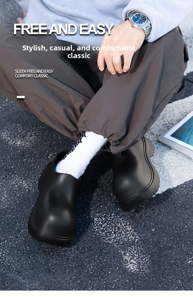 Men's Waterproof Slip-On  oes Thi Bot Heightening Large Head Rain Boots Bla Chef oes Spring Season Casual Out...