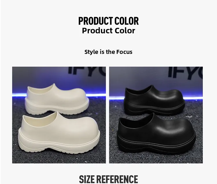 Be the first to review “Men’s Waterproof Slip-On oes Thi Bot Heightening Large Head Rain Boots Bla Chef oes Spring Season”