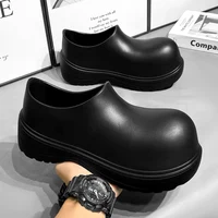 Men's Waterproof Slip-On oes Thi Bot Heightening Large Head Rain Boots Bla Chef oes Spring Season Casual Out...
