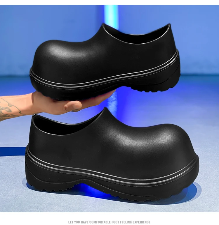 Men’s Waterproof Slip-On oes Thi Bot Heightening Large Head Rain Boots Bla Chef oes Spring Season