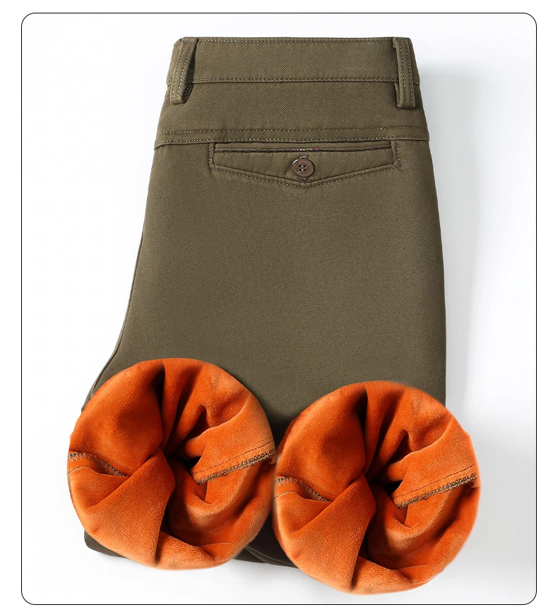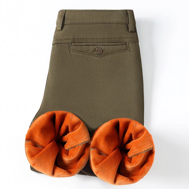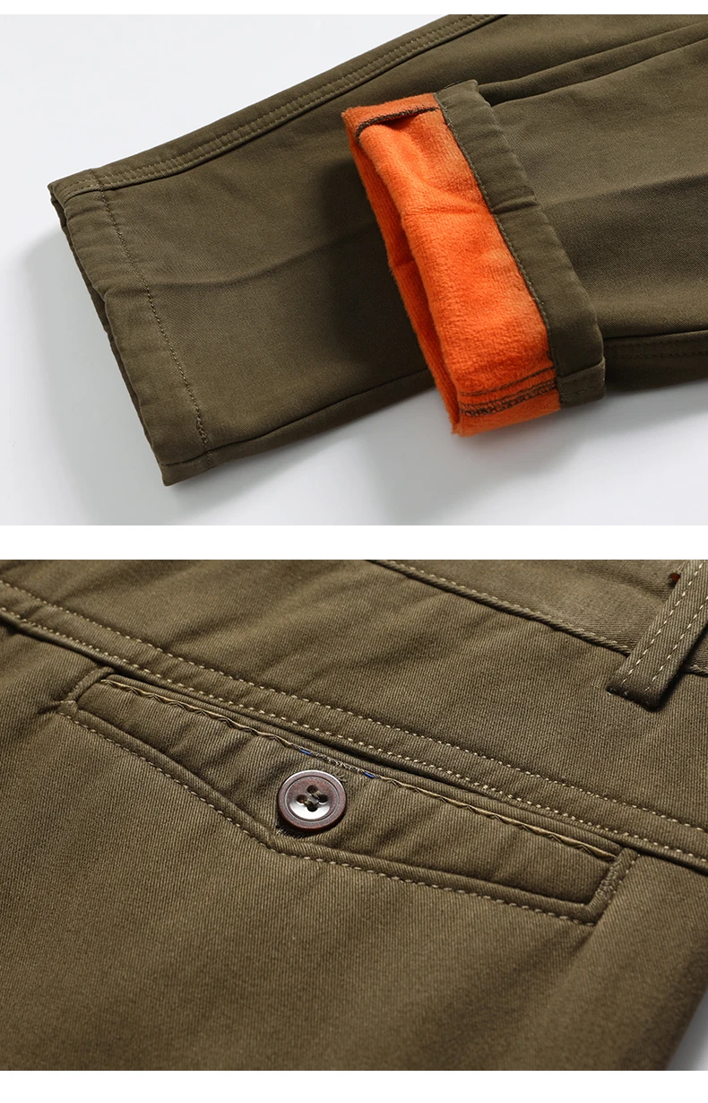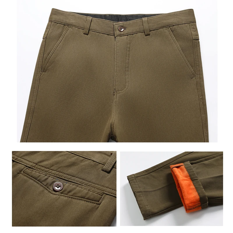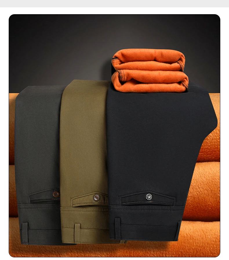 High Waist Winter Men Pants Stretch Fleece Warm Thick Straight Basic Classic Cotton Black Khaki Casual Pants Men Plus Size 40 42