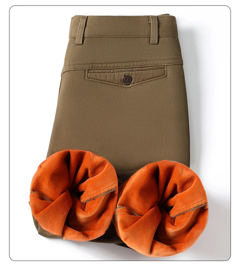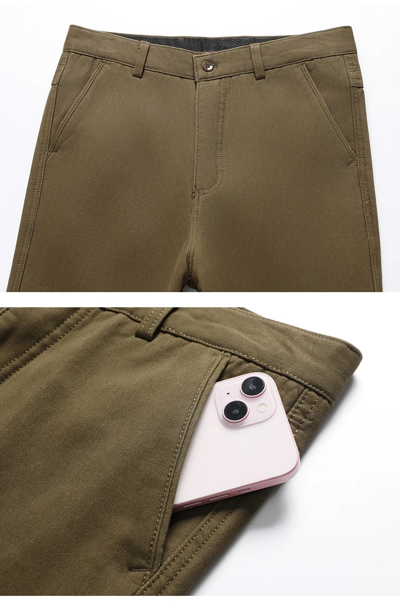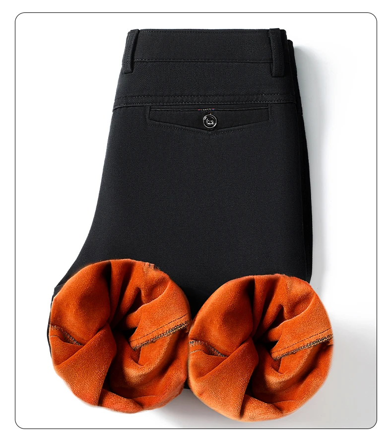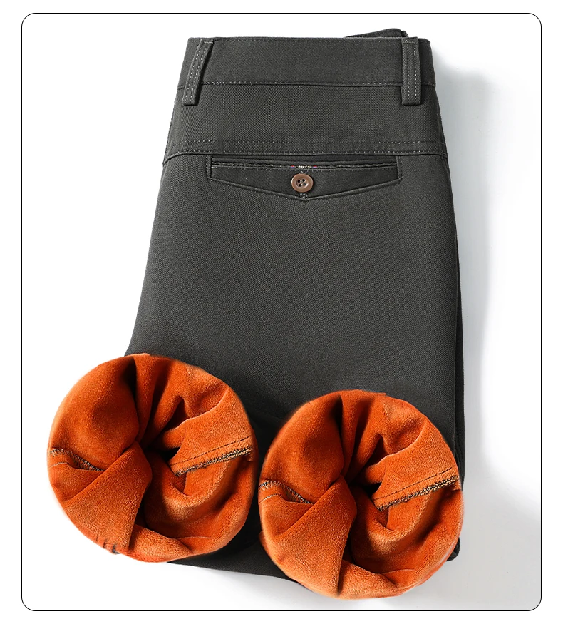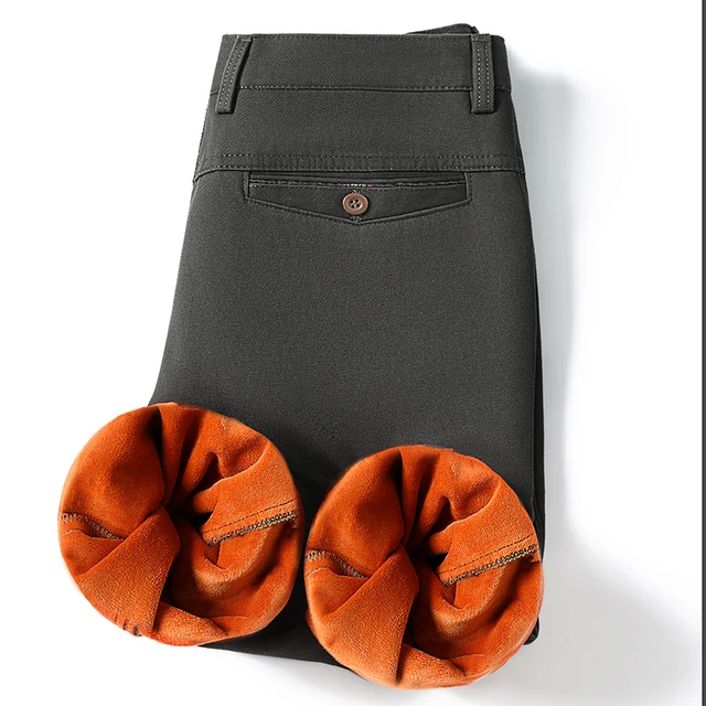 High Waist Winter Men Pants Stretch Fleece Warm Thick Straight Basic Classic Cotton Black Khaki Casual Pants Men Plus Size 40 42