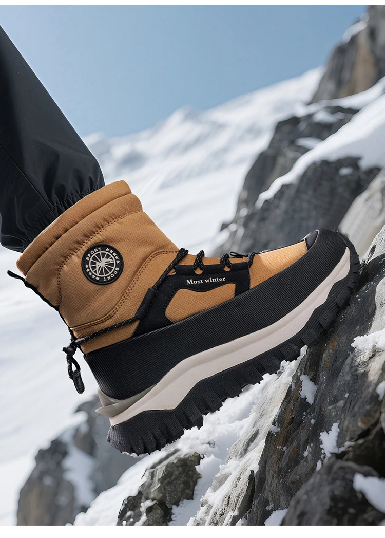 Men's Winter Snow Boots Waterproof Anti-slip Fce Lined High Top ort Boots Cold Resistant Leather Splicing Casual Boots