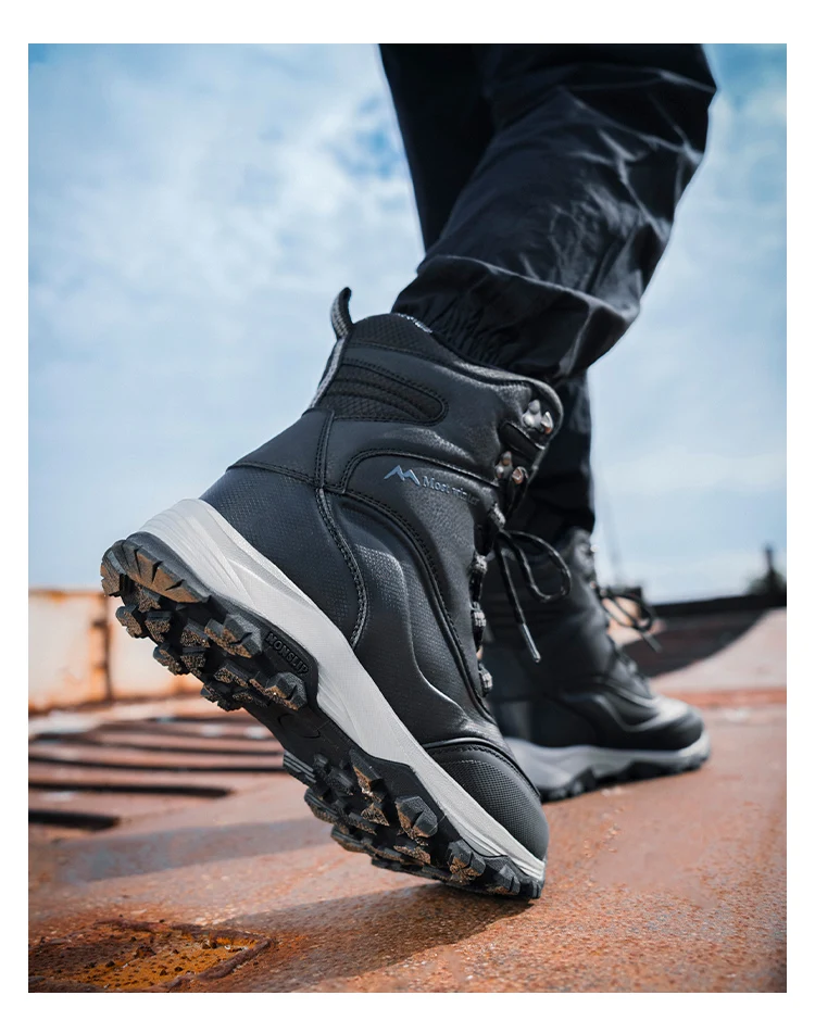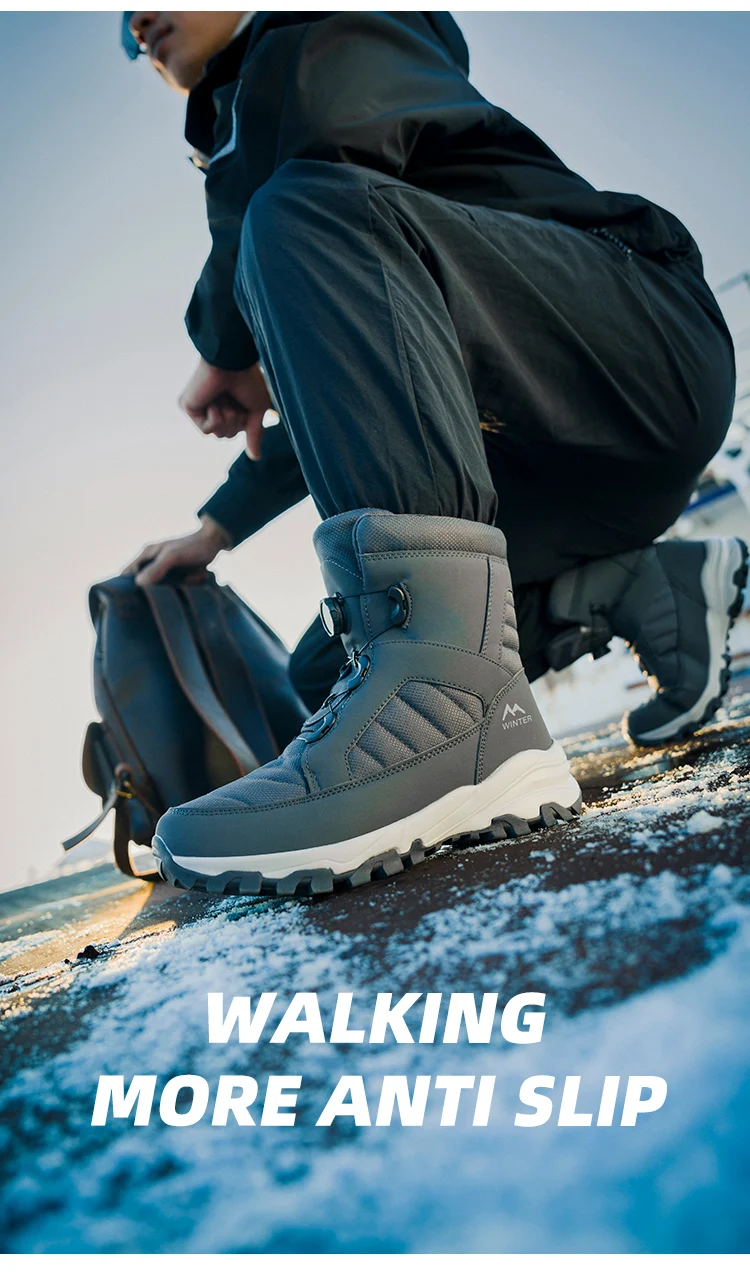 Men’s Winter Snow Boots Waterproof Anti-slip Fce Lined High Top ort Boots Cold Resistant Leather