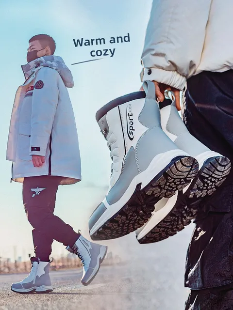 Men’s Winter Snow Boots Waterproof Anti-slip Fce Lined High Top ort Boots Cold Resistant Leather