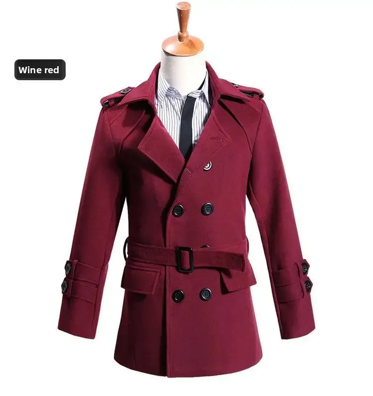 Men’s Woolen Coat Mid-Length Thickened Autumn Winter New Style Windbreaker Fashionable Casual Outerwear
