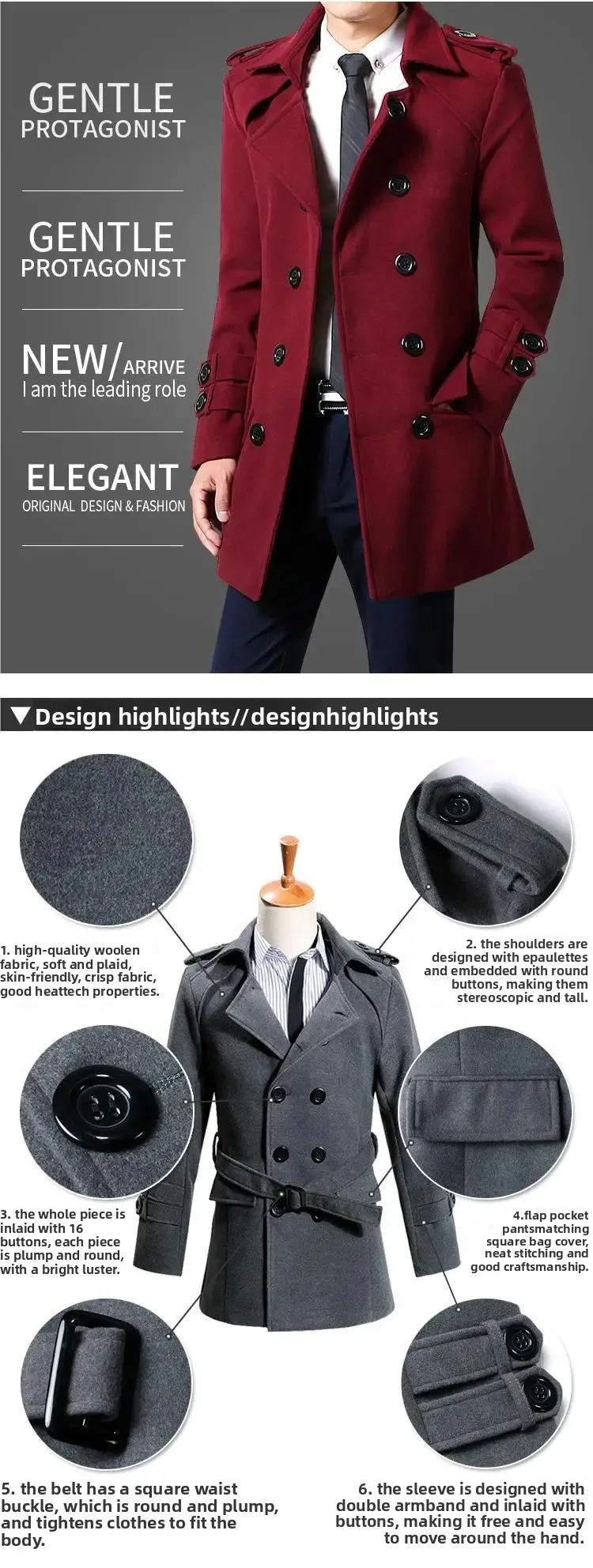 • Thickened Woolen Material : Crafted from premium woolen material, this coat offers exceptional warmth and comfort for the autumn and winter seasons.