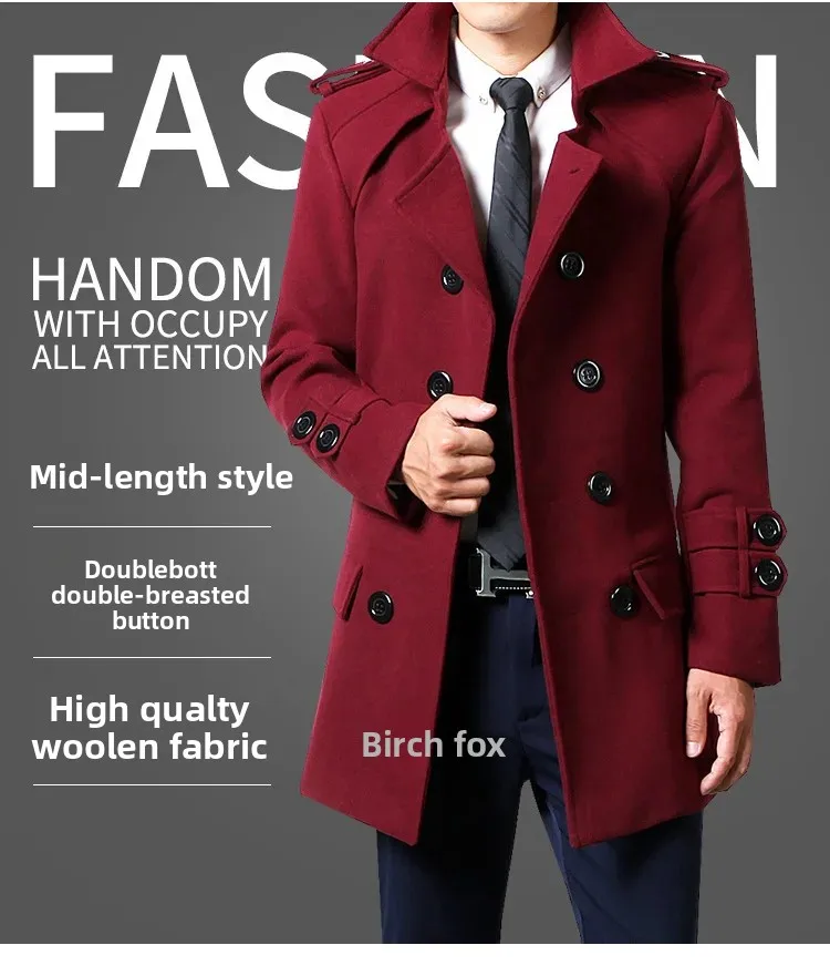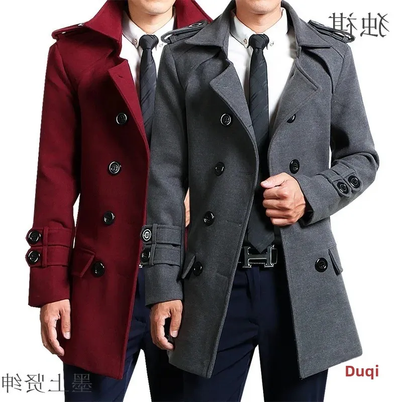 Men’s Woolen Coat Thickened Fleece Lined Mid-Length Casual Windbreaker Trendy Autumn Winter New