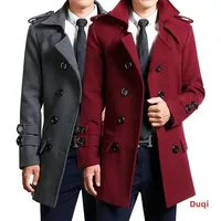 Men's Woolen Coat Thickened Fleece Lined Mid-Length Casual Windbreaker Trendy Autumn Winter New Arrival Outerwear