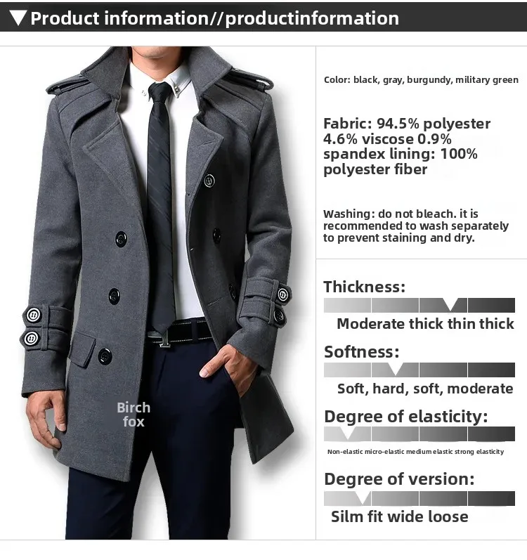 • Thickened Woolen Material : Crafted from premium woolen material, this coat offers exceptional warmth and comfort for the autumn and winter seasons.