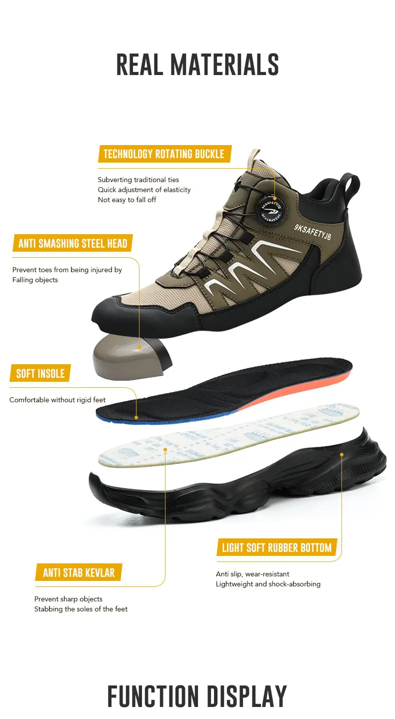 Men's Work Shoes Steel Resistant Anti-Puncture Anti-smash Toe Boots Slip Light Weight Safety Shoes Comfortable Men Shoes 40-46