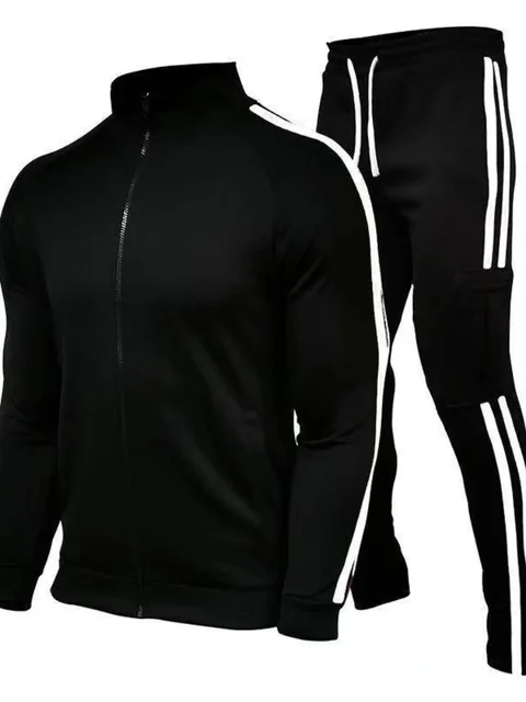 Men’s Zipper Stand Collar Workout Set, Sweatshirt & Sweatshirt, Sports Suit, Running, Fitness