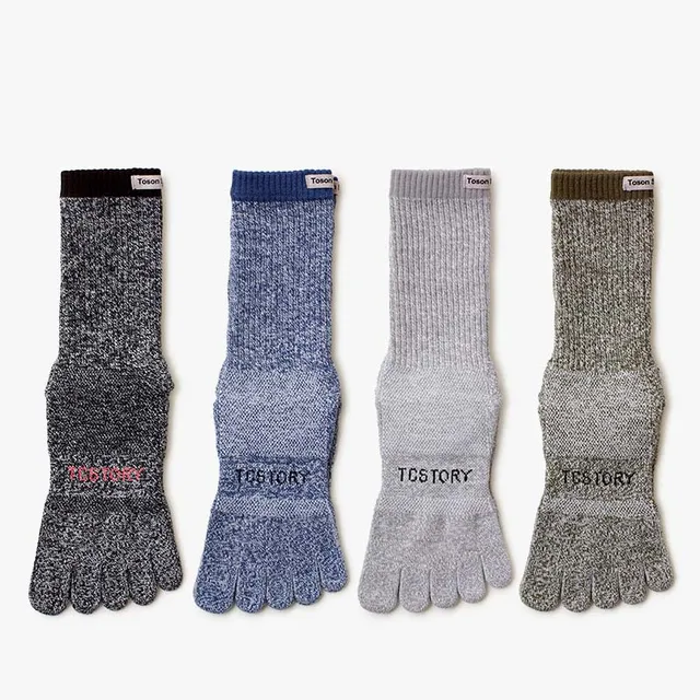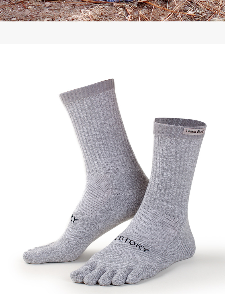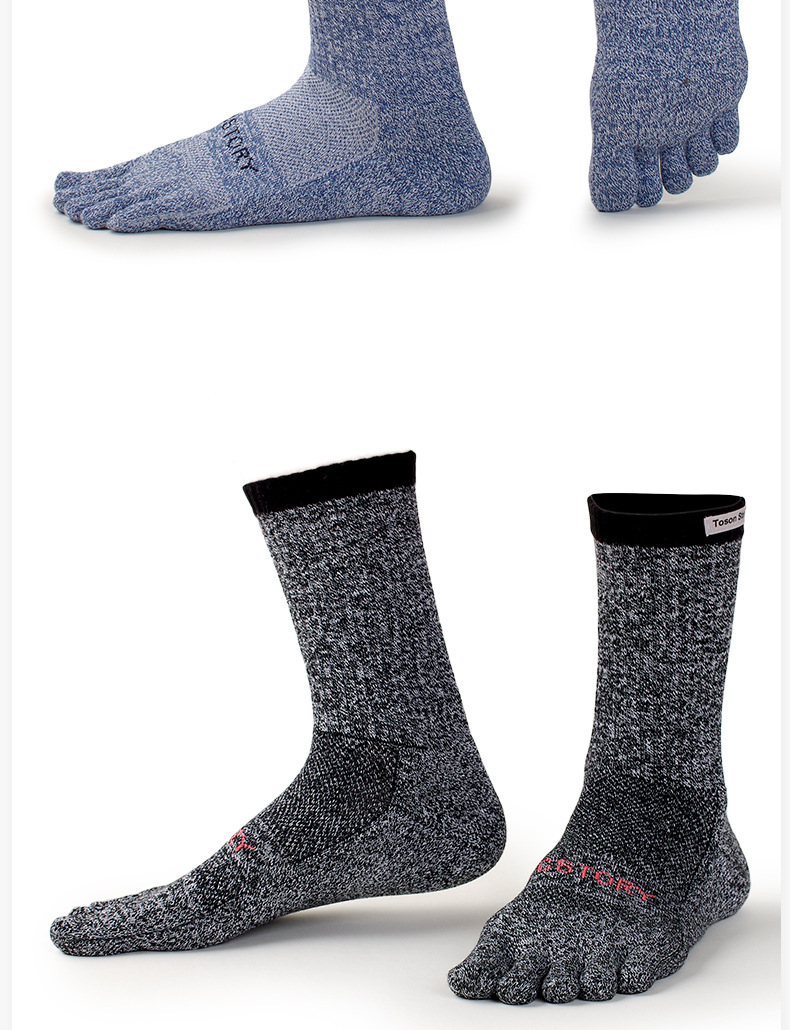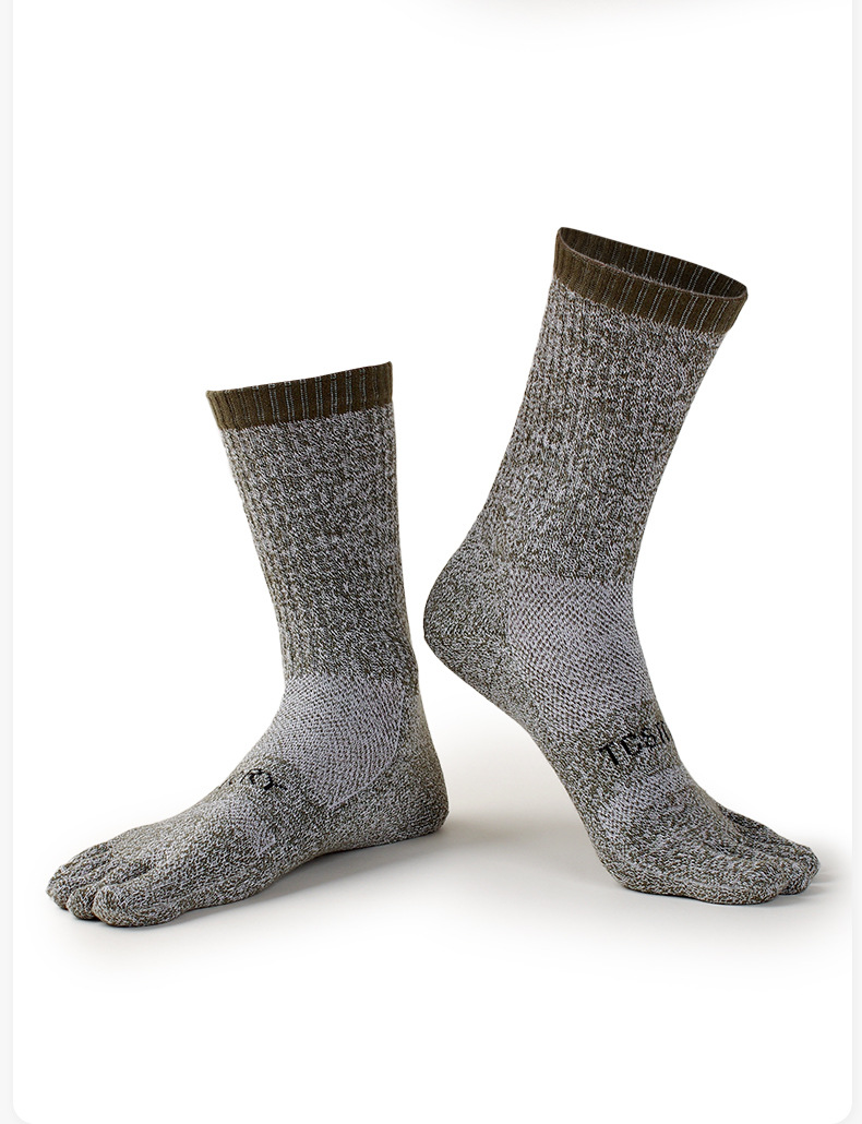 Merino Wool Five Finger Sports Socks Sweat Absorption Anti-odor Autumn Winter Towel Base Terry Long Tube Split Toe Socks