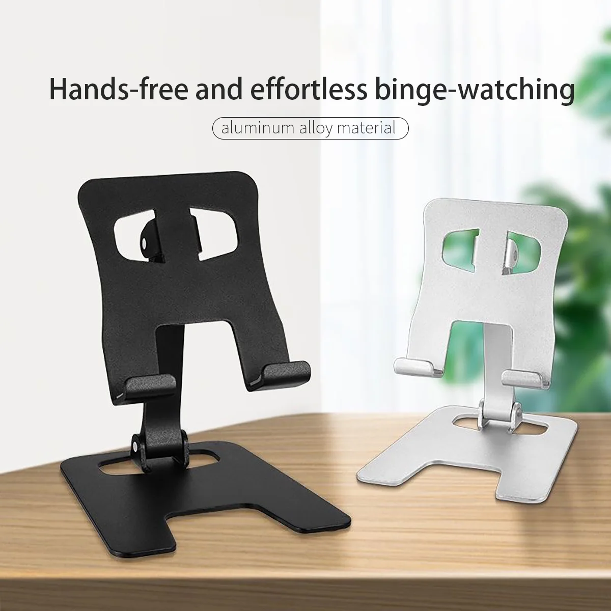 Metal Desktop Folding Stand 360 ° Rotating and Adjustable, Universal for Mobile Phones and Tablets, Portable and Stable Stand for Office Work, Watching Dramas, and Live Streaming.